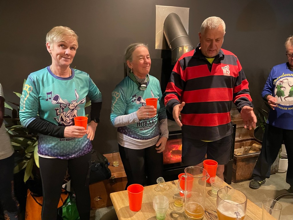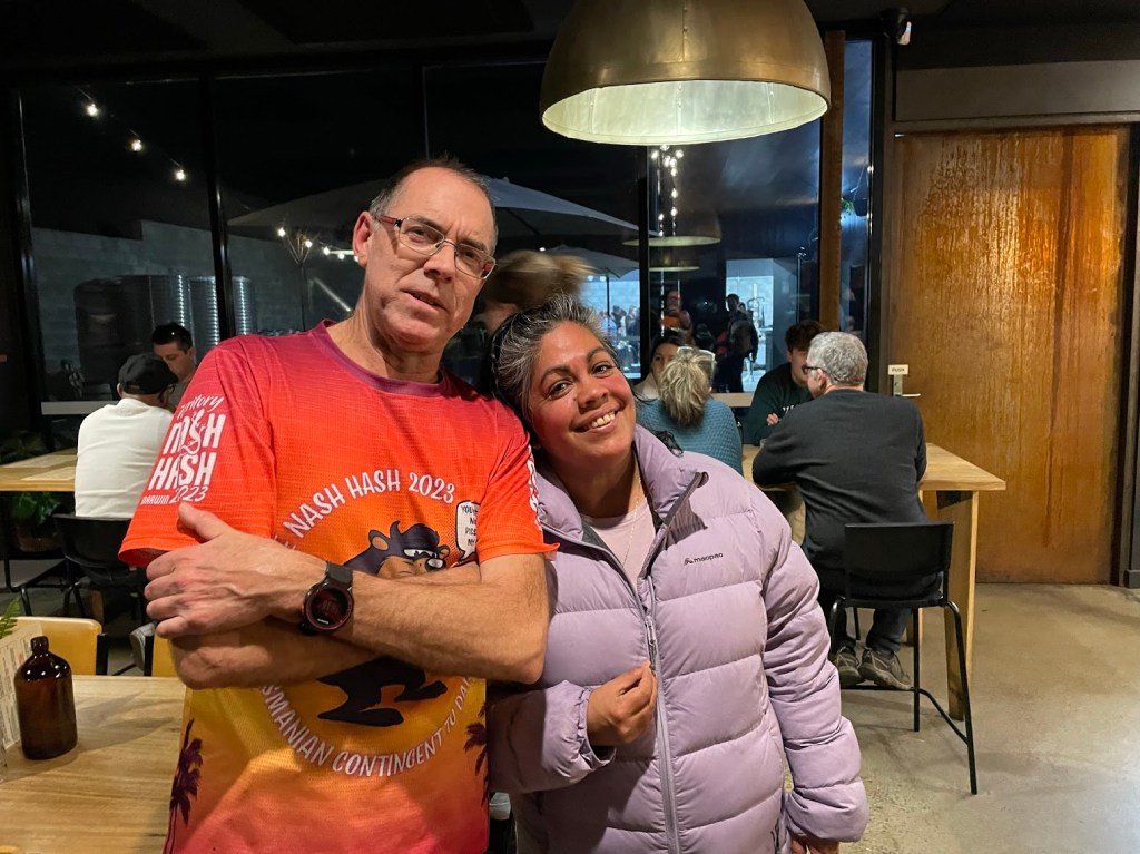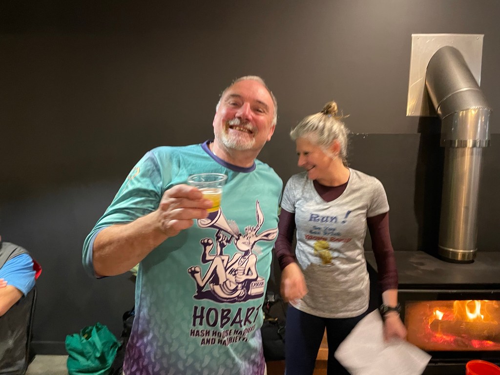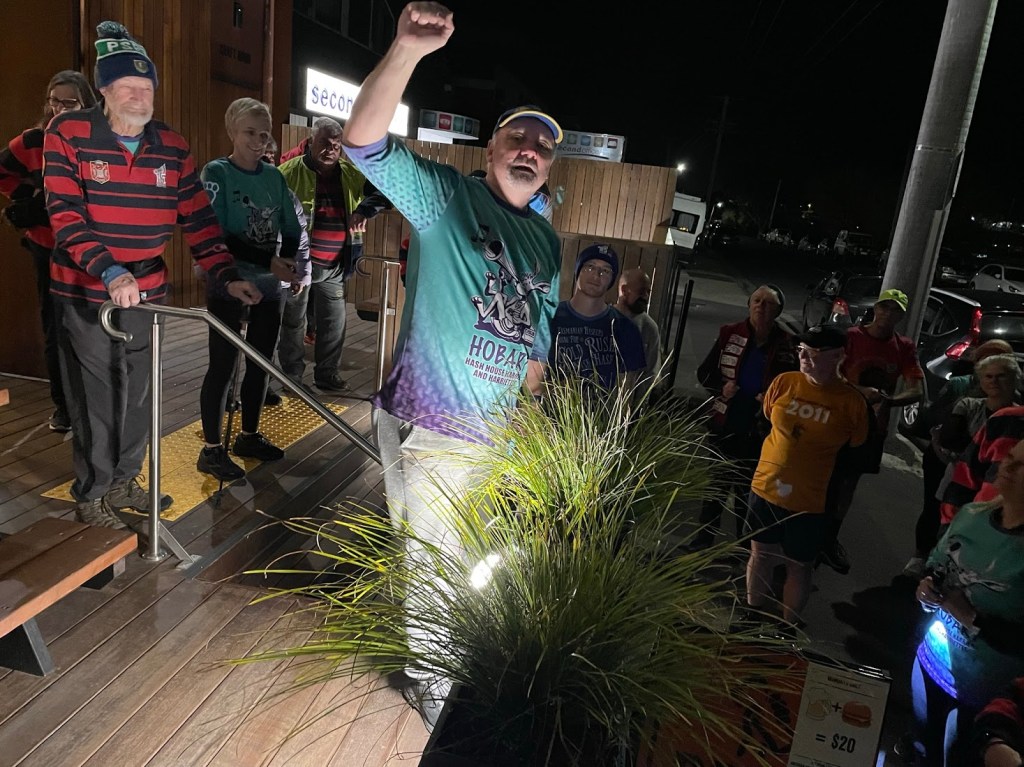 Hashing alongside a major road makes calling somewhat difficult; the fap-fap-fap of chunky 4WD tyres and whine of over-revving Hyundais would drown out even a Steady Eddie discourse on the eucalypts of south-west Tasmania. Hence, when Pole Dancer called out while running in the opposite direction, but on the opposite side of the highway, we couldn’t work out if he was telling us that we were ‘on the runners’ trail’, or that he had ‘an incredibly large pen!s and wasn’t afraid to use it.’