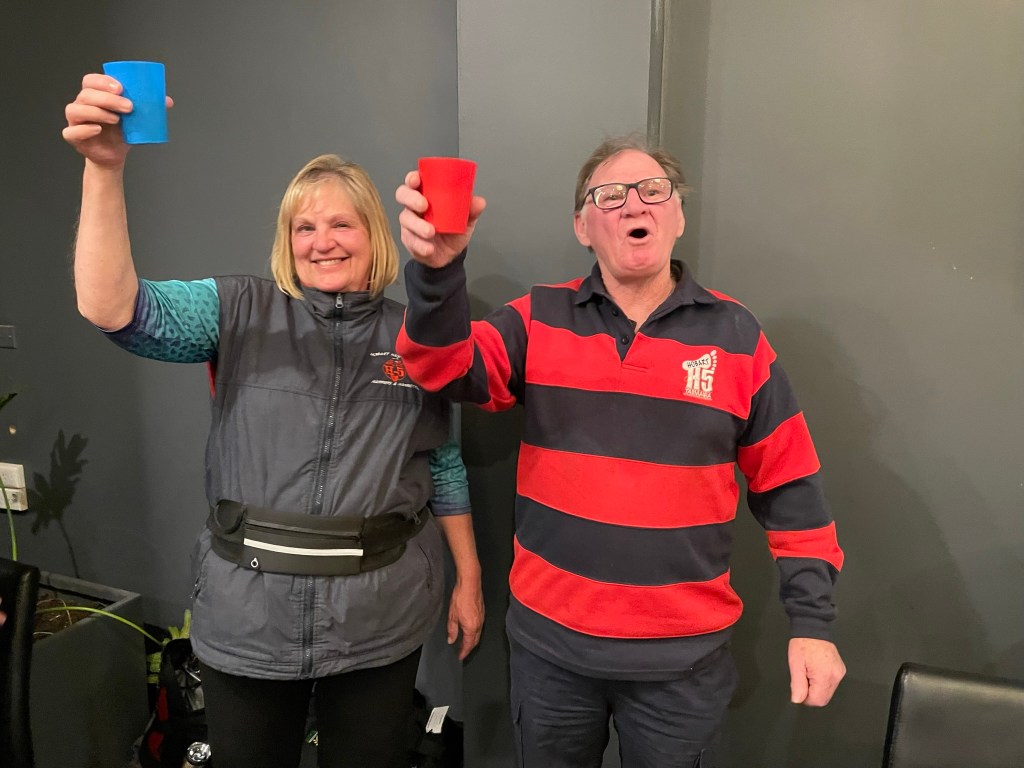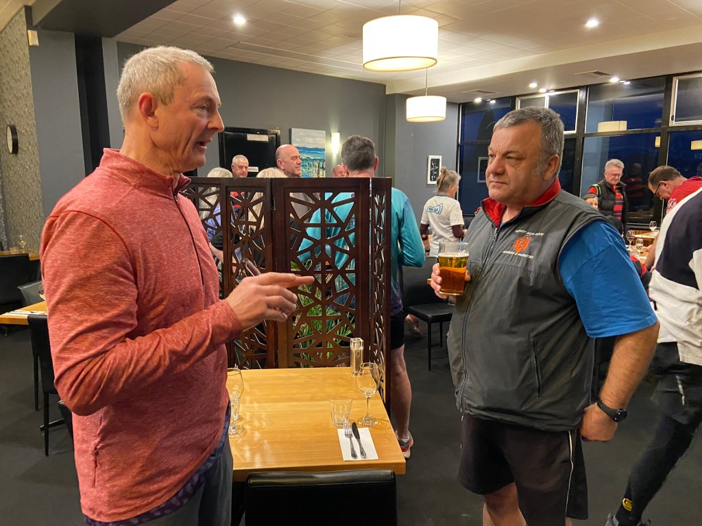 We assumed our regular corner of the Hotel dining room, ordered our meal and pre-hydrated in anticipation. The arrival of Thrill Seeker had everyone checking their watches (or in Jerk Off‘s case, pretending to check his watch because he doesn’t wear one, nor can read the time). There was still 10 minutes before ‘on’ would be called! Thrill Seeker filled the time trying to get his Medicare card to work on the white Square device.