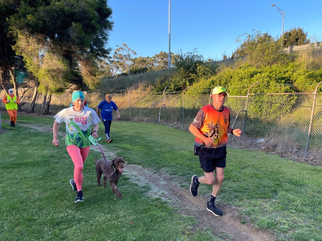 The runners looped around the New Town rivulet track, before rejoining (most of) the walkers around the back of the hockey grounds, both Packs hitting the promised PS around the same time.