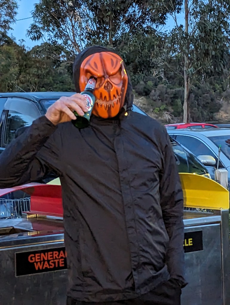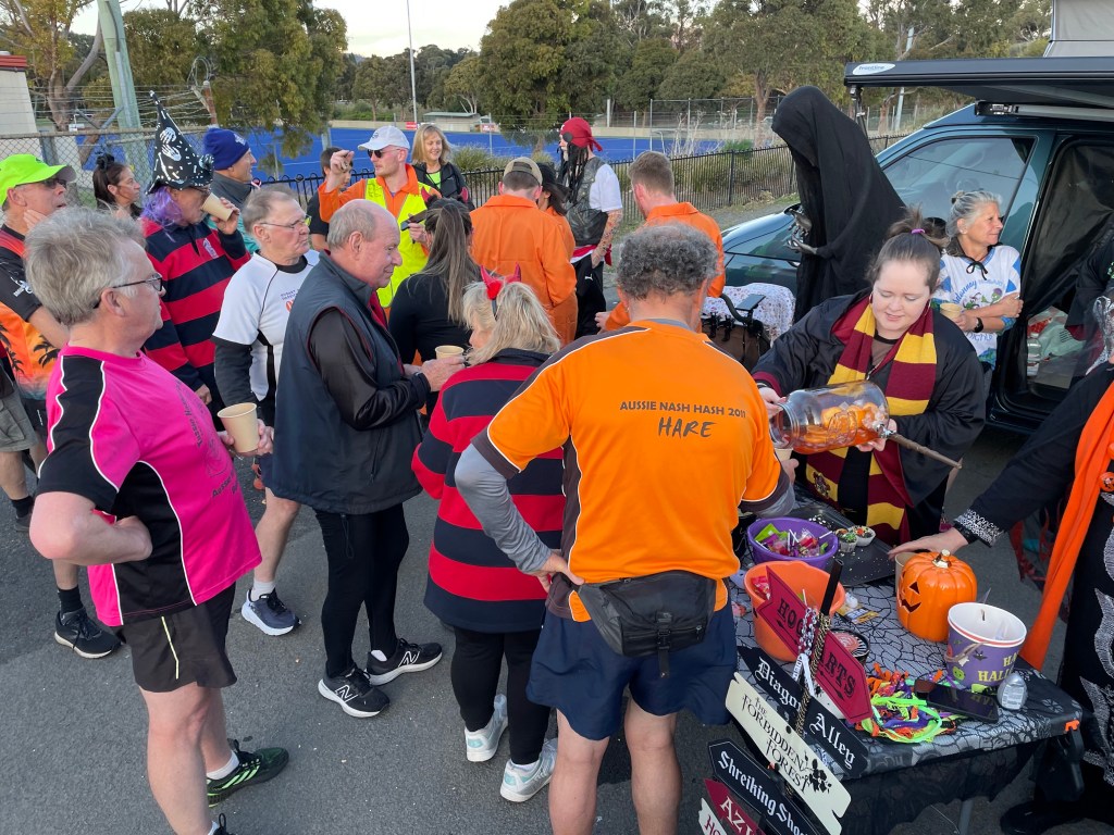 It has been a while since we’ve had to break out the Hash dress-up box – Oktoberfest and Christmas notwithstanding – and Halloween is a pretty easy get. Granted, some Hashers need no special treatments to look scary – not mentioning any names…