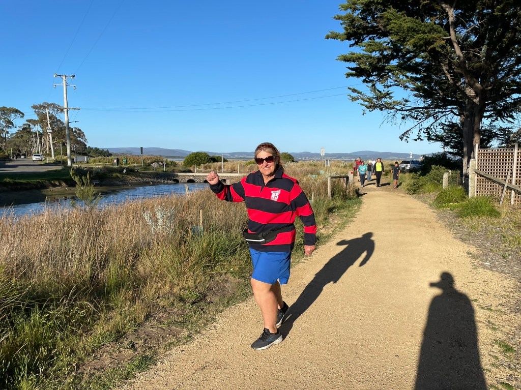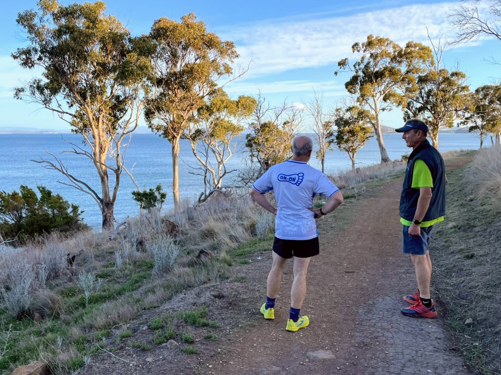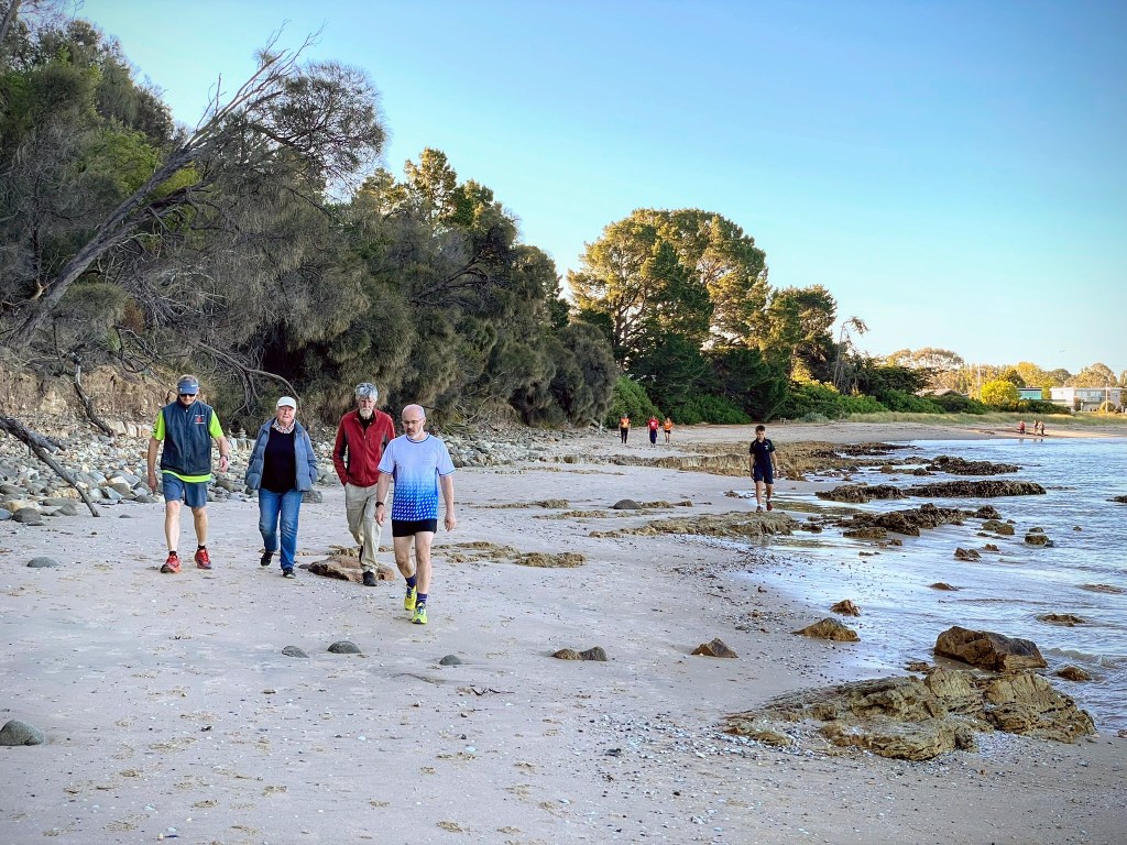In the distance I saw the late-starting Big Mac and virgin Hasher Patricia disappearing around the headland, and gave pursuit. (On reflection, they may have been looking for some ‘alone time’, which could have been awks.)