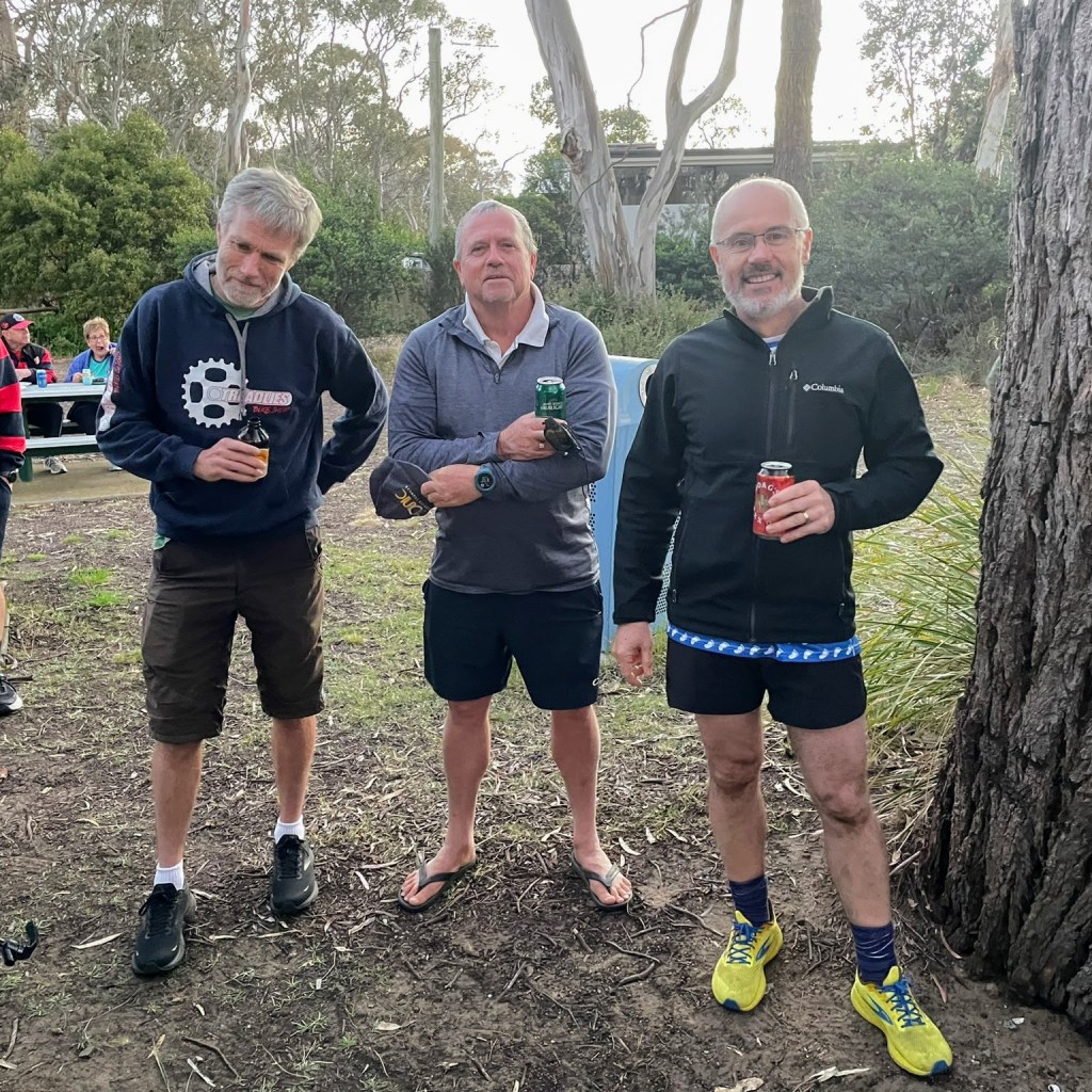 A moderate spring day, beachside locality and the high likelihood of a flat trail resulted in another large turnout, with 47 half-minds* signing on.