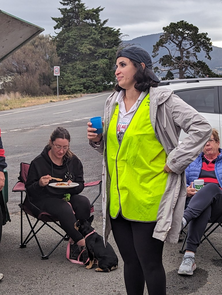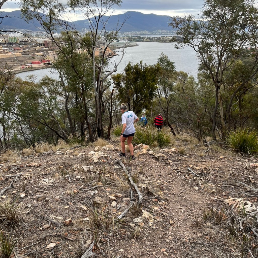 It was still Porter Bay, but it wasn’t pleasant; it was one kilometre of unbroken up. As in ‘right up’. Gangrene’s dog, with it’s keen animal senses, wasn’t having a bar of it and staged a sit-down protest, and Yes Please‘s body was revolting (a bit harsh) having walked to the top of kunanyi the previous day.