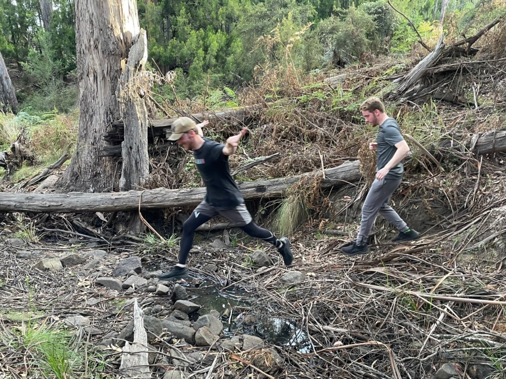 Just when I had spotted what could be three pieces of bark in a vague arrow shape, Sir Eve found a deviation – because he’s that kind of guy – and subtly suggested that we were sight-challenged (by yelling ‘ARE YOU ALL FKN BLIND’) for missing the chalked bark arrows tucked away behind a bush.