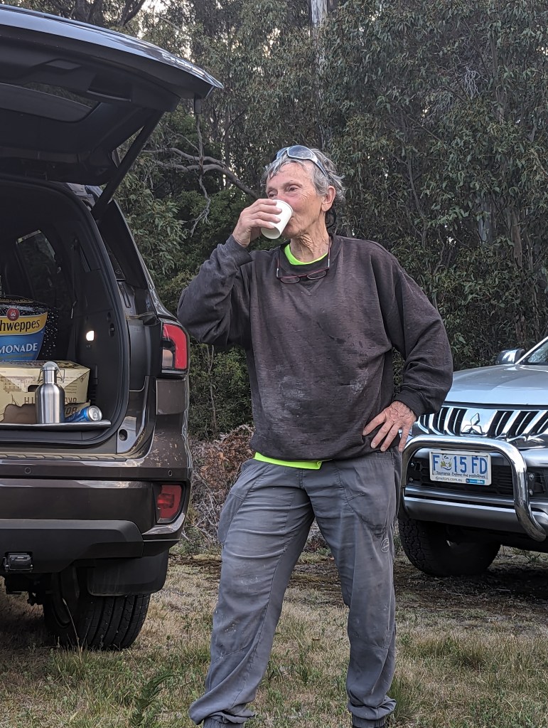 Next came a practical lesson in chaos theory, as one-by-one cars entered the unmarked parking area and took up the position most likely to block everyone else from leaving. Rigor Mortis didn’t even bother to take the road, driving her Subaru out of the bush from the general direction of Margate. (The real Margate, not CW’s fake Margate.) Yes Please was the last to arrive (no surprise there), forming the last piece of the gridlock puzzle.