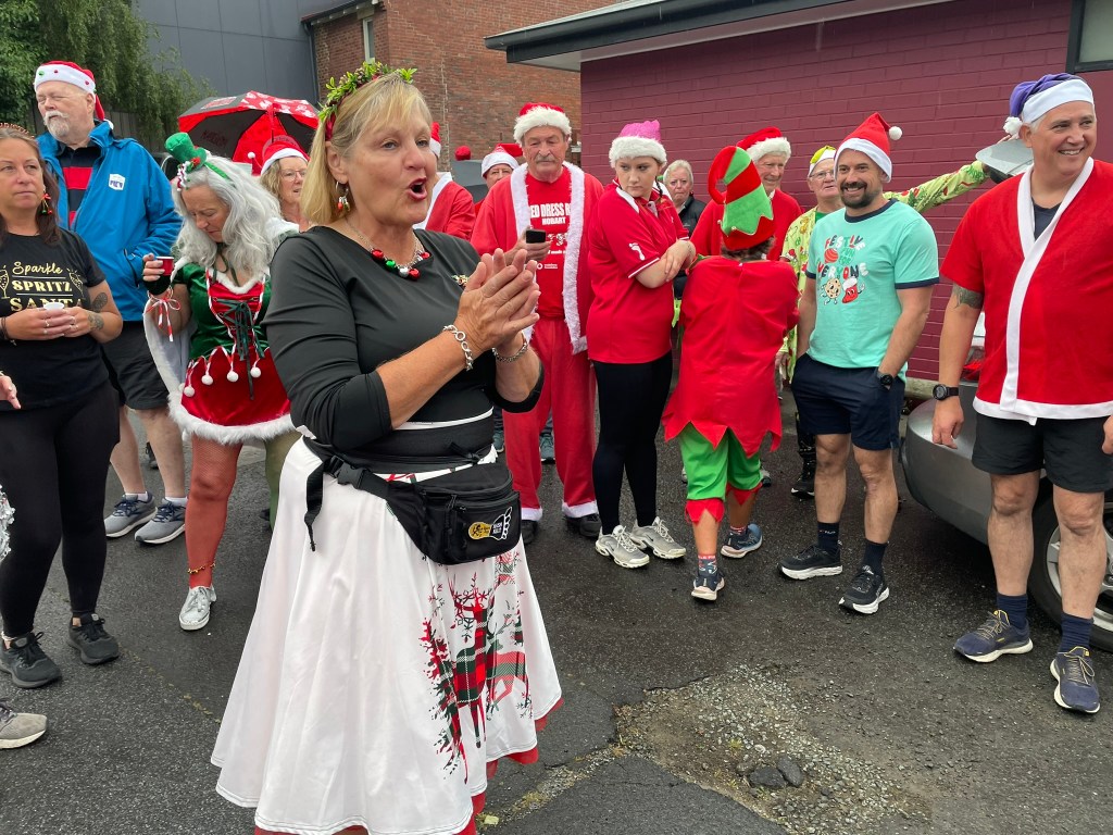 We spilled out from the car park and headed down through the NoHo main strip, where onlookers went through three phases. The lead Santa would pass by and there would be a double-take, but only the barest hint of acknowledgement that this is not just a normal occurrence. A second Santa would get the quizzical eyebrow usually reserved for someone wearing high-heeled Crocs, or a Collingwood jersey without a balaclava. Or both. The third phase would come when the following phalanx of Santas reached them, resulting in a look could be best described as ‘what the f*ck?’ There was an additional dose of confusion administered by Sir Eve, leaving bystanders to wonder why there was a lone Morris dancer among the group.