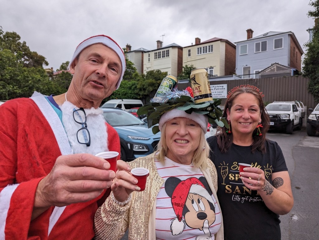 There was a mad dash to the last p!ss stop, which was unsurpisingly located in Soundy Park (named in honour of former Hobart Mayor J.T. Soundy, who also didn’t mind a bit of ‘recreation area’), although calling the weird straggling Santas observed by motorists a ‘mad dash’ could be even to far fetched for this publication.