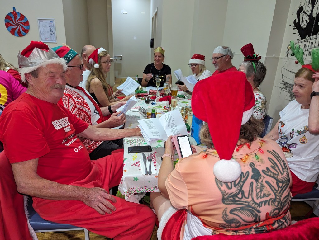 A sack of Santas gathered upstairs at the Queens Head in anticipation of much Christmas cheer, both intangible and in liquid form.