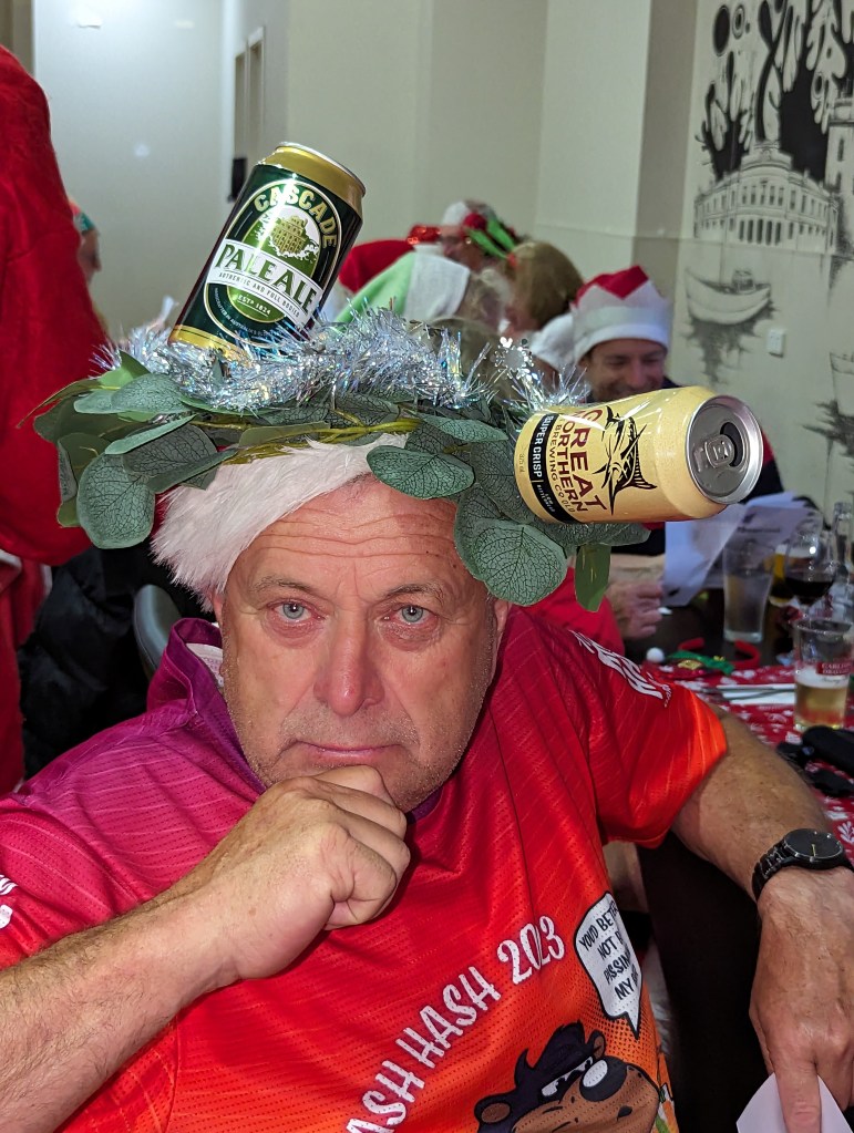 We welcomed visitors from afar – our own version of the three wise men in Broken Seal and Ladder. (But not so wise that they could count properly.) We also harked some missing Hashers who put the ‘can’t’ back into remember, in Vegie and Round Up.