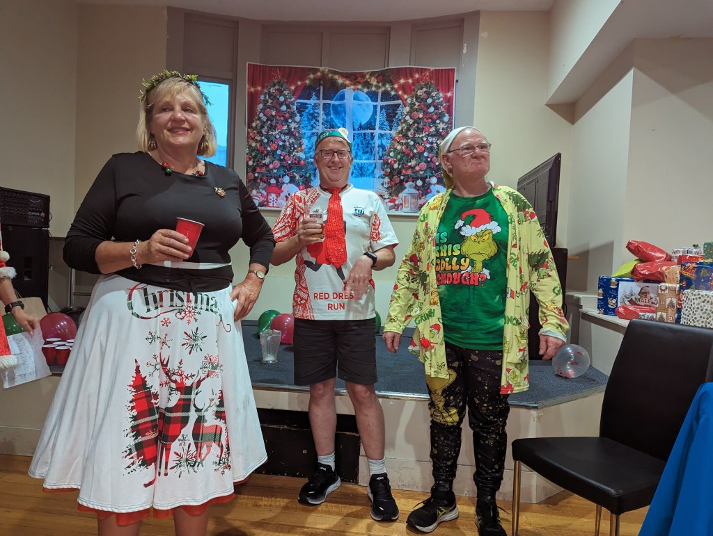 After a substantial meal and a Circle that I somehow missed, there was a visit from a Santa whose suit was certainly in better shape than most of the imposters, as was his body. Maybe not in better shape, but A better shape.