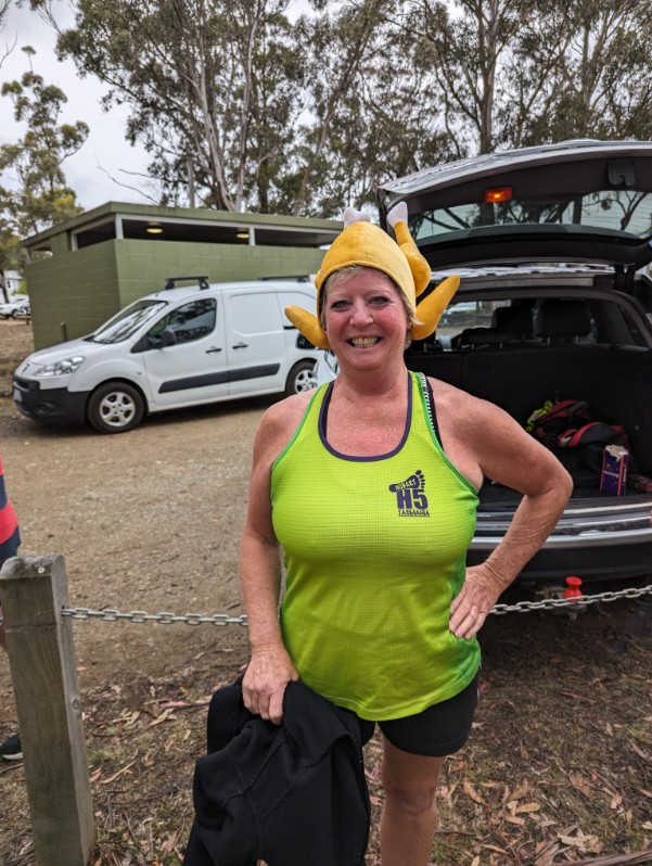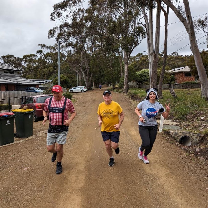 After crossing Olinda Grove and a loop around Hobart College, the trail meandered through some of the Skyline Reserve tracks and emerged onto Mt Nelson Rd for a road walk/run back to the On! On! After a while, Thrill Seeker also arrived from whatever route he had followed.