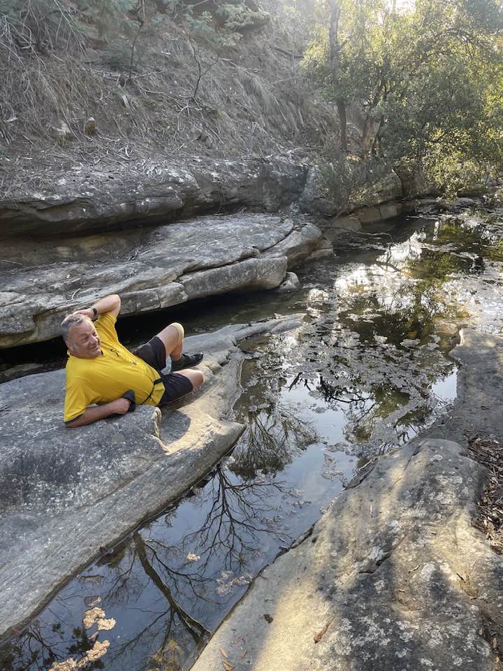 The runners were invited to visit Gov’nor Honkers‘ lagoon, while the walkers were sent uphill to discover Just Kidding’s dark, cavernous hole. Eventually the runners returned, preferring a peek at JK’s hole over the good Gov’nor’s piss puddle.