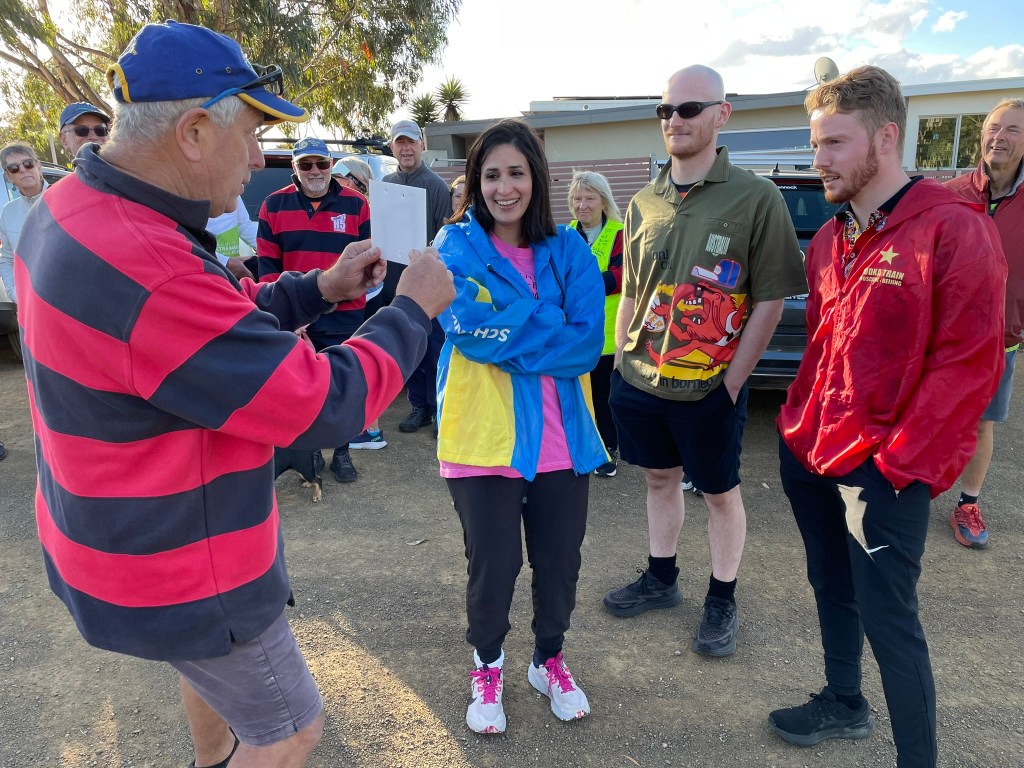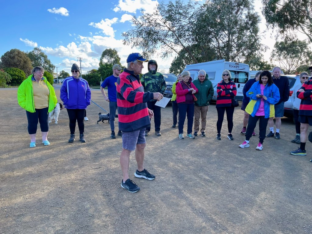 At 6:45pm (6:30pm South Arm Time) Hare In The Raw circled the masses to talk at them about the trail. There was some complicated technical chat about Corflute and pink tape (justice for the colour-blind!) most of which seemed to be directed at Magic Touch. In The Raw then boasted about putting on the “greatest p!ss stop of all time”, which is something that he’s very good at doing.