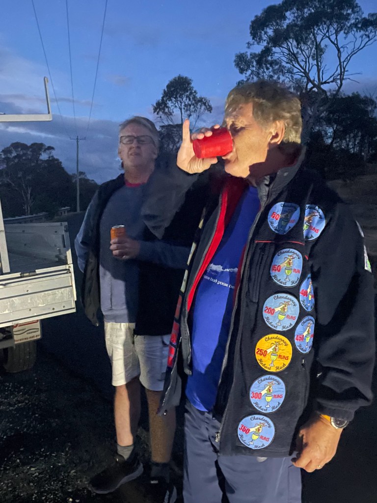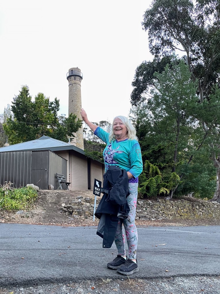 This part of the trail came out at the Shot Tower, leaving a trek up the Channel Highway to home. On the way we found Pole Dancer doing ‘a Prickit‘ because he’d already gotten out of bed and needed to justify that with an extra kilometre.