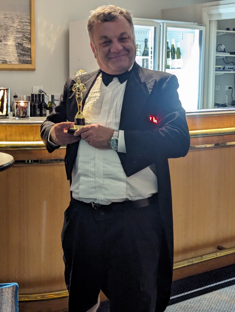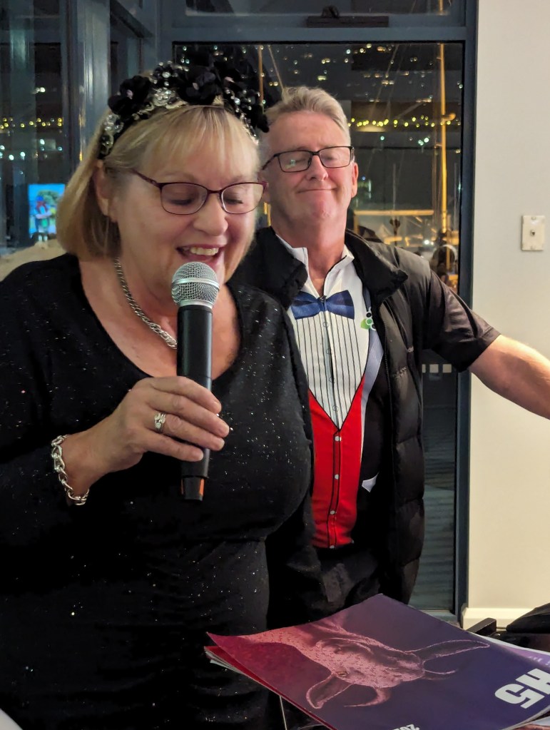 The JMs then took centre stage (if ‘centre stage’ meant the furthest and darkest corner of the venue) and Sonar showed the now defunct Lips how to use a microphone. Incorrectly. Only Growler, calling upon her Rotarian expertise, walked that fine line between holding a dildo and blasting everyone’s ears, while announcing the two awards. Shithead of the Year – now seemingly representing superior stupidity – was justly awarded to Magic Touch for her propensity to get lost on trail and arrive back at the on-on via Uber. The second cumming of the C*nt of the Year – the name says it all – went to Sir Eve for unwisely taking on the ‘bubbles brigade’, of which one of the JMs is the No.1 ticket holder.