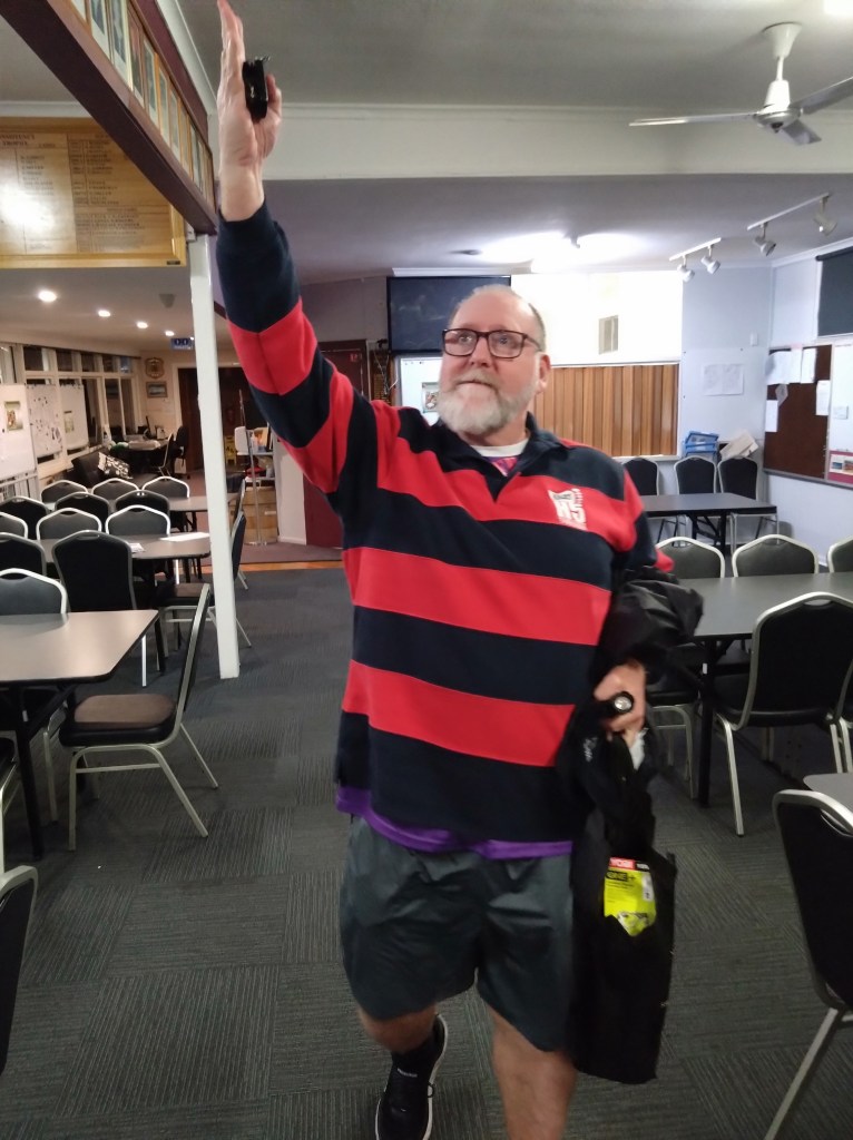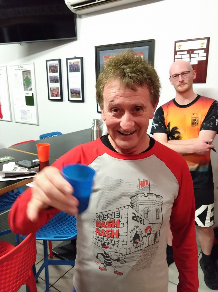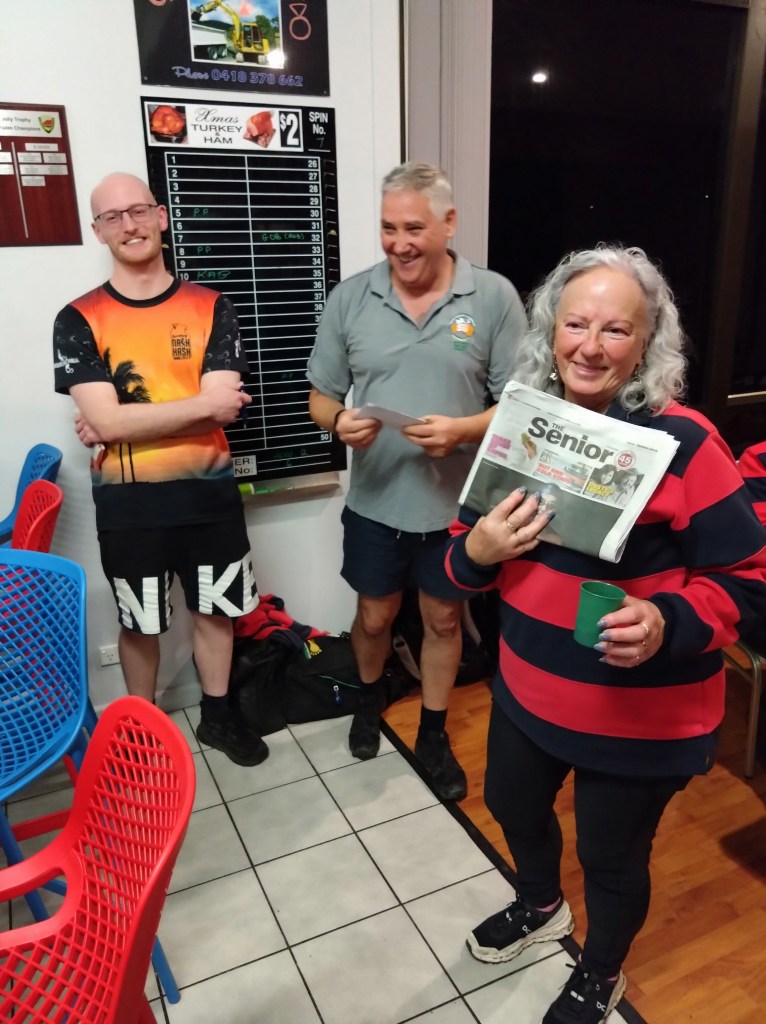 Stunned Mullet set up his Kokoda raffle stall in direct competition to the Hash Cashiers, but the lack of a cash alternative limited his market. Something he plans to rectify next week with a more accessible ‘card swipe option’. (See below.)