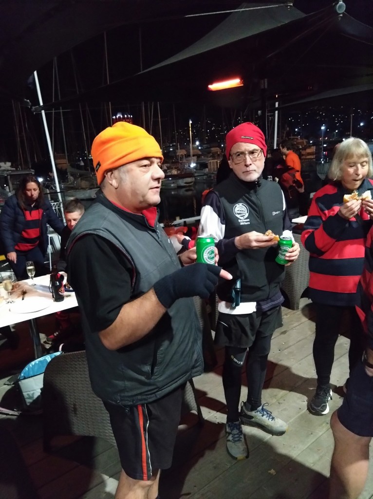 importantly, H4 bedtime was nearing. After a short speech he handed over a cheque for $2,500 to the ladies from the research centre (I forgot to write their names down, sorry) and then, as if a silent recall alarm had gone off in their pacemakers, H4, to a man, shuffled and wheezed off out the door and were gone. Back to the nursing home, I suspect. No announcement, no next week’s run, no club song, nothing.
