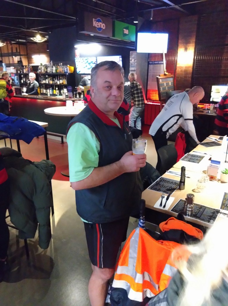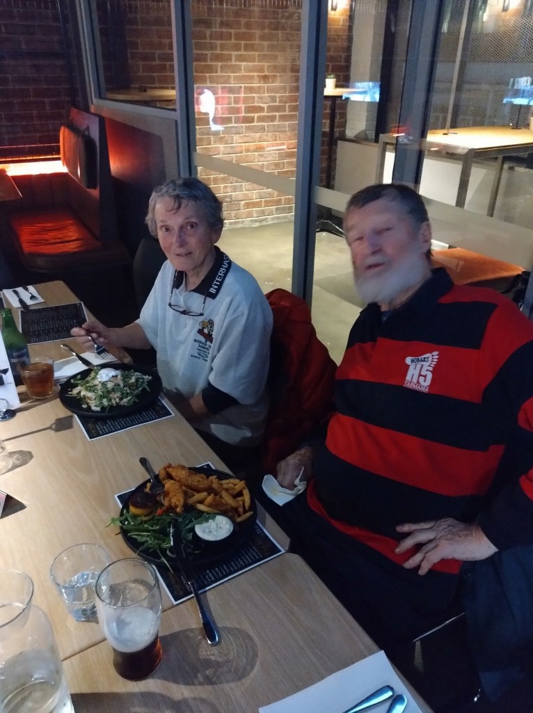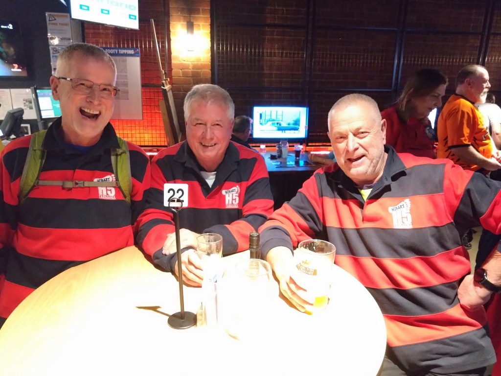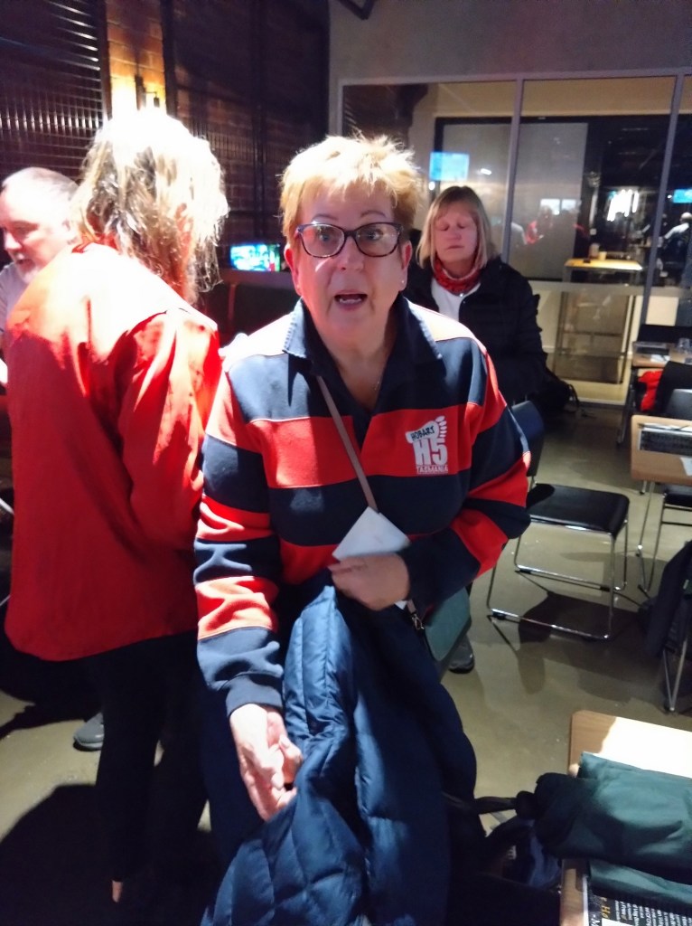 The walkers’ trail measured 4.58kms, with a tiny elevation gain of 100m. Back at the Hobart Workers Club, we ate our meals surrounded by wall-to-wall racing and Keno screens. We adjourned to the covered-but-chilly balcony for the On On, which Prawn Star and Bee’s Dick conducted with the expected amount of offensiveness and irreverence. I wonder what those pious, do-gooding, middle class, male early founders of the club, intent on improving the education and moral fibre of working class men, would have thought about all this?
