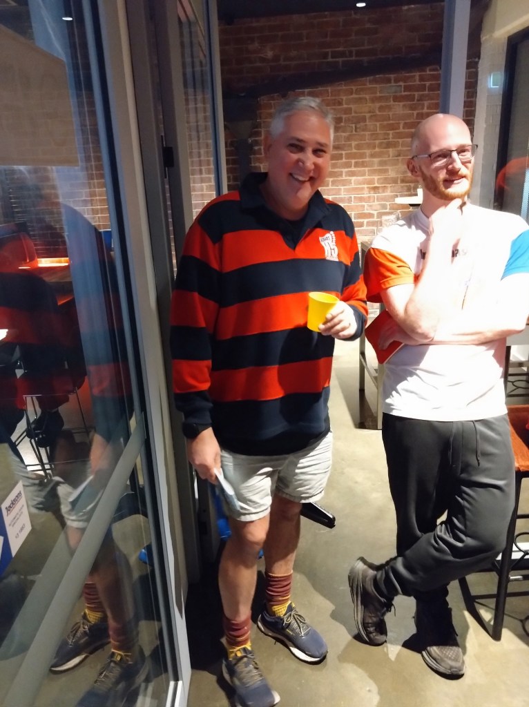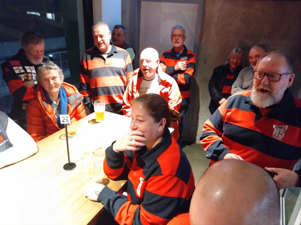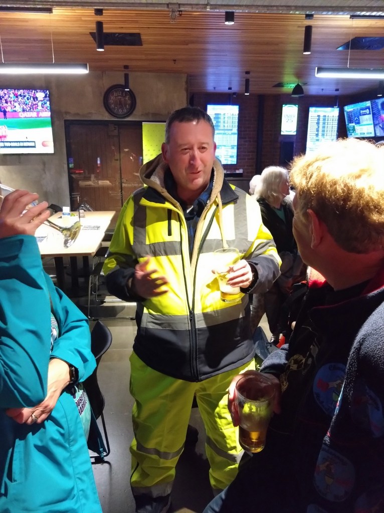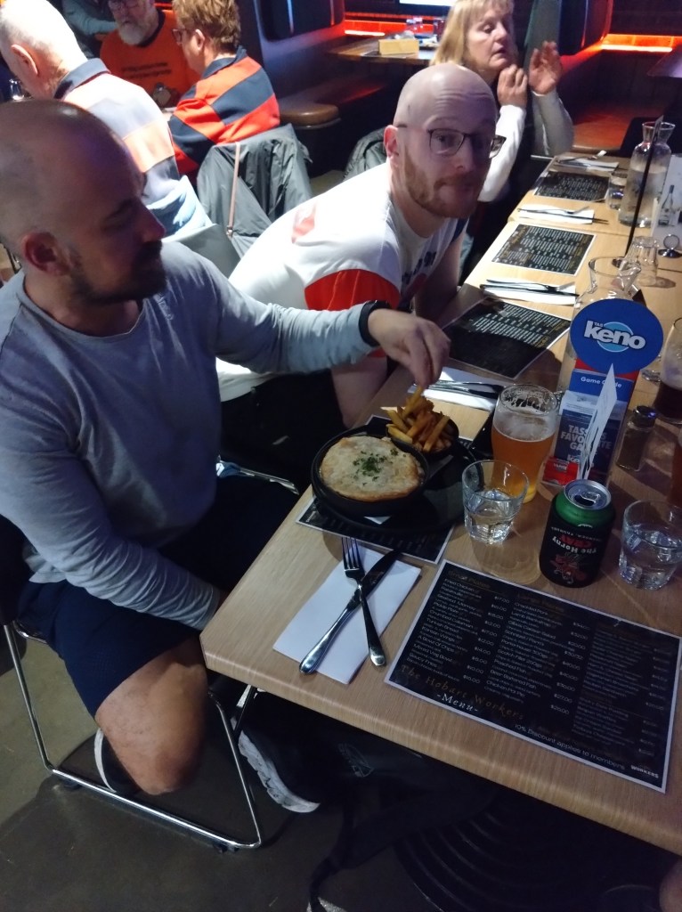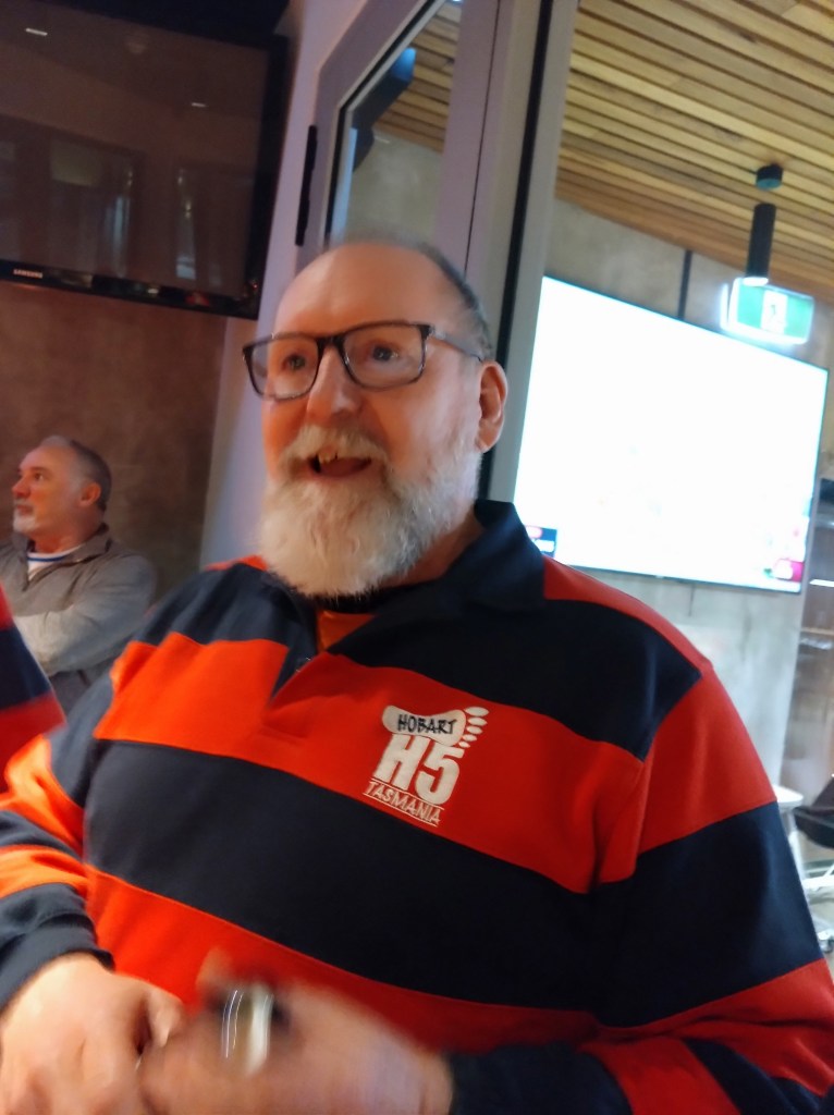 The walkers’ trail measured 4.58kms, with a tiny elevation gain of 100m. Back at the Hobart Workers Club, we ate our meals surrounded by wall-to-wall racing and Keno screens. We adjourned to the covered-but-chilly balcony for the On On, which Prawn Star and Bee’s Dick conducted with the expected amount of offensiveness and irreverence. I wonder what those pious, do-gooding, middle class, male early founders of the club, intent on improving the education and moral fibre of working class men, would have thought about all this?