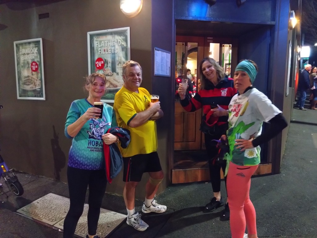 My trail distance was 3.9kms. Gov’nor Honkers reported 4.3kms, but admitted to getting lost somewhere around St David’s park. Perhaps he needed a bodyguard! It was a good city trail, in mild winter weather, and another dream run for the Flat Earthers.