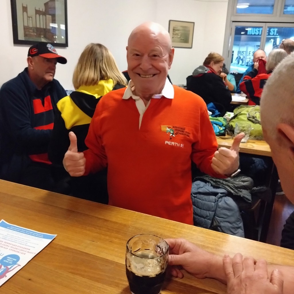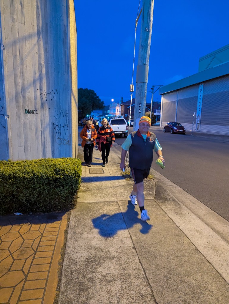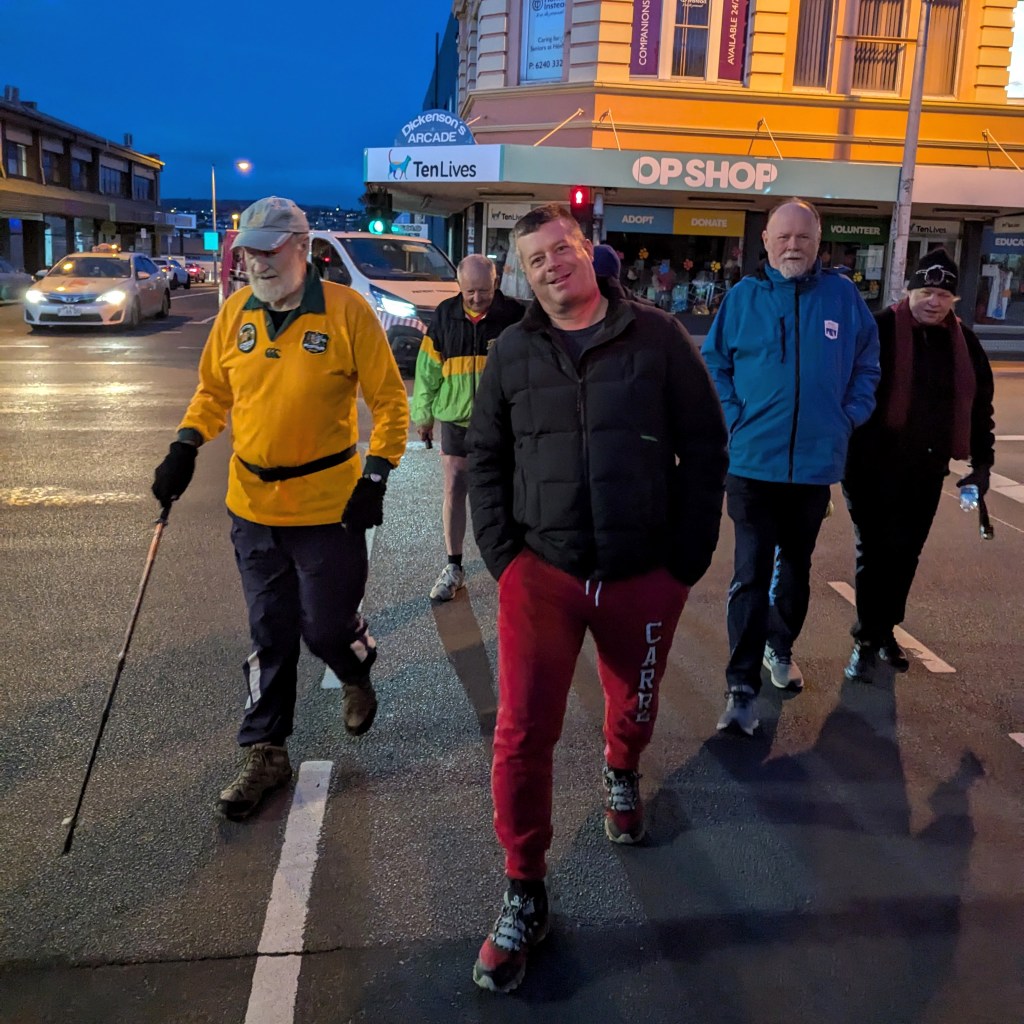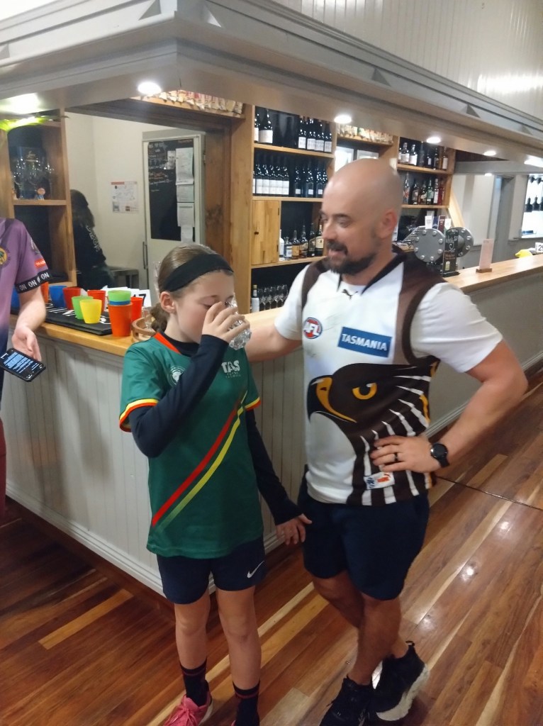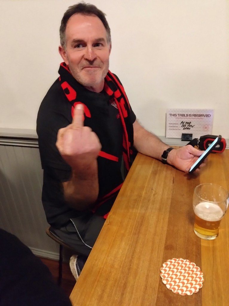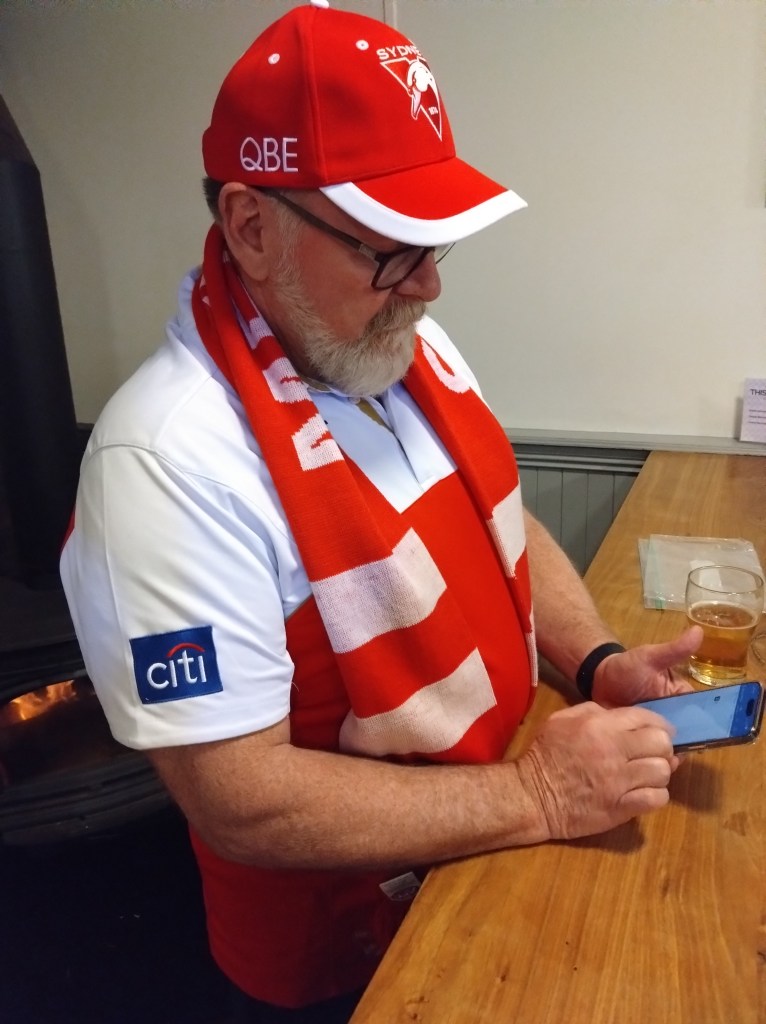 I’ve never really understood the religion of football. Carn the Wombats! But at least one H5 Hare, at this time of each year, will feel the call to offer a footy theme run, where fans and fake fans (it’s easy to identify the fake fans because they don’t know who wears their Club’s Number 1 guernsey) gather, all decked out in their Club’s colours. And so it was for Next Week’s Run 2300 from the Moonah Hotel.