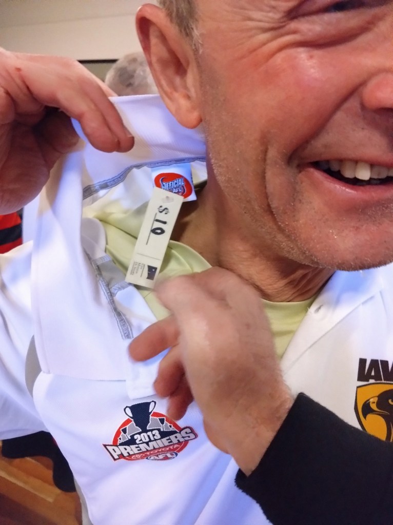 - Next Week (from ITR): wearing a Hawks shirt, all he could find at the last minute in the Ops Shop; it still had its tab attached