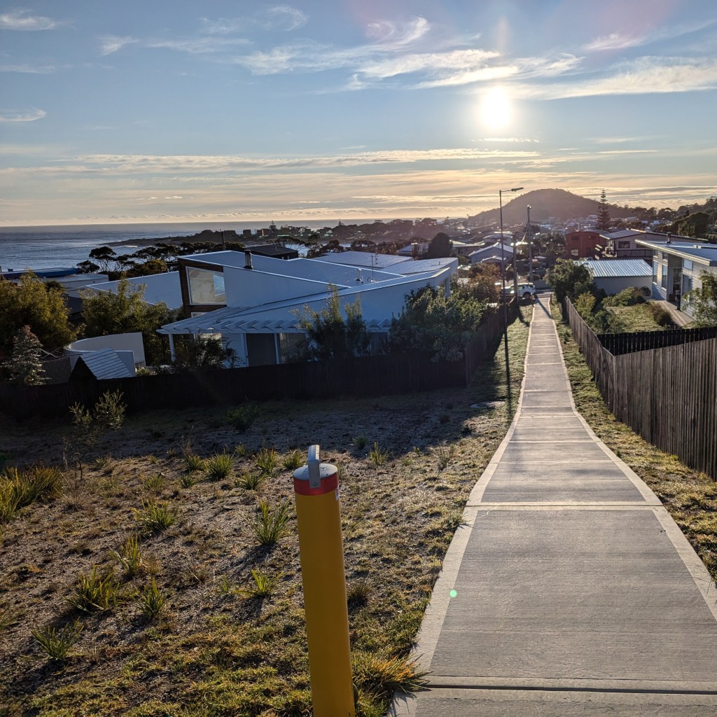 Nevertheless, the trail he set was a masterpiece and should be the subject for a study on how to set a trail.   ITR made clever use of the terrain, checks and FTs as the trail wound north through Bicheno. The NDIS turned south early to avoid a lung shattering climb of 15 metres later. Runners and walkers kept heading north before a split and, both now on separate trails, headed south into the bush before reuniting and heading east.  The trail snaked its way through bushland on the southern fringes of the town during which members of the pack received abuse from one landowner for disturbing her yapping and irritating little terrier.