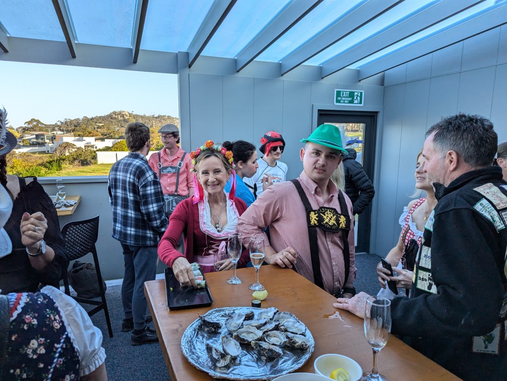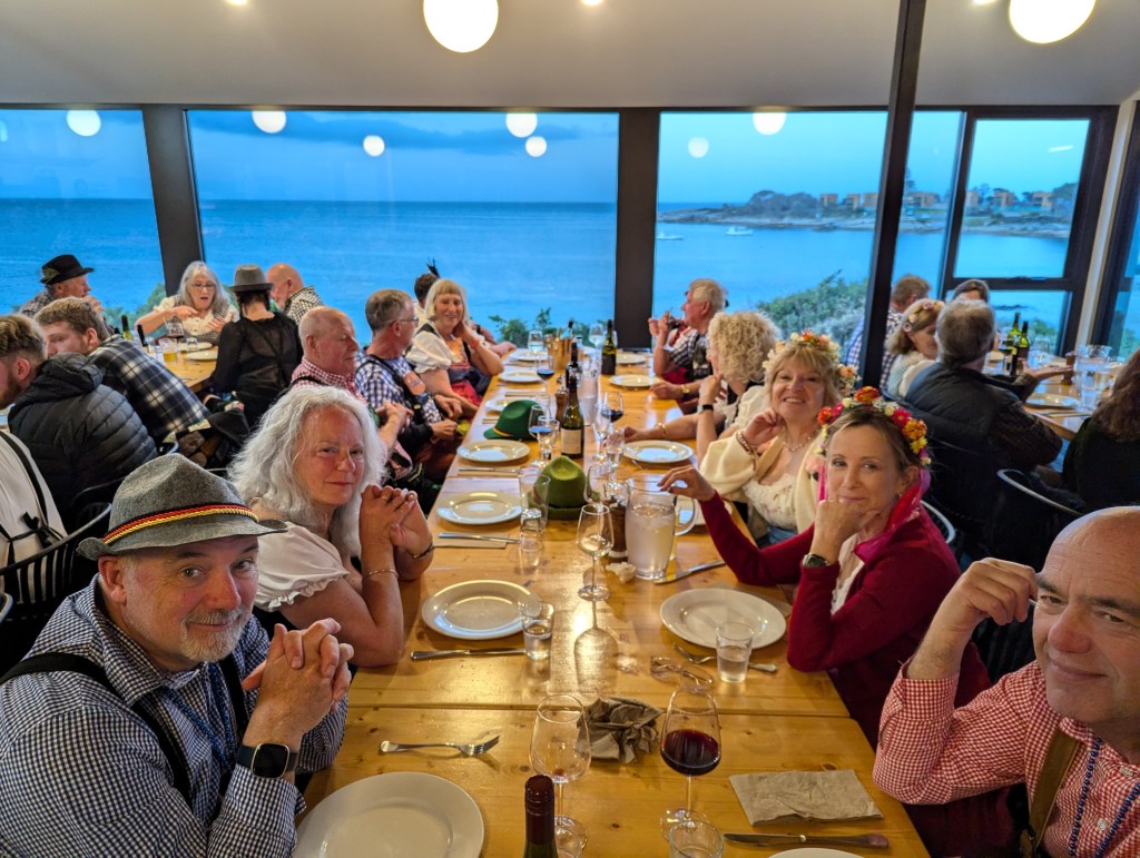 The JMs had organized the evening meal at the Sea Life Restaurant, a short stroll away. The pack arrived at 6.00 p.m. (that is in the evening, Griz) to be treated to bubbly, oysters, and a plethora of other finger food.  Everyone sat down to a table banquet at 7.00 p.m. (One hour later, Griz.) The meal was wonderful, the staff pleasant and helpful.  We had the place to ourselves. Anyone who didn’t have a good time should go and have a good look in the mirror. Hats off to the JMs for an inspired decision to use this place for the meal.