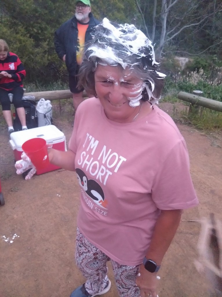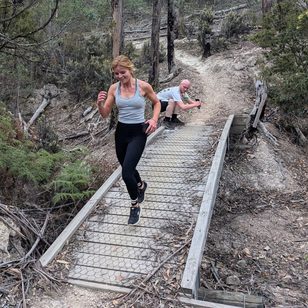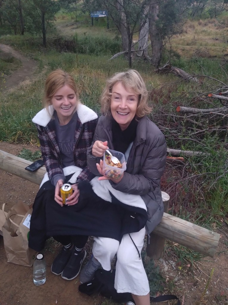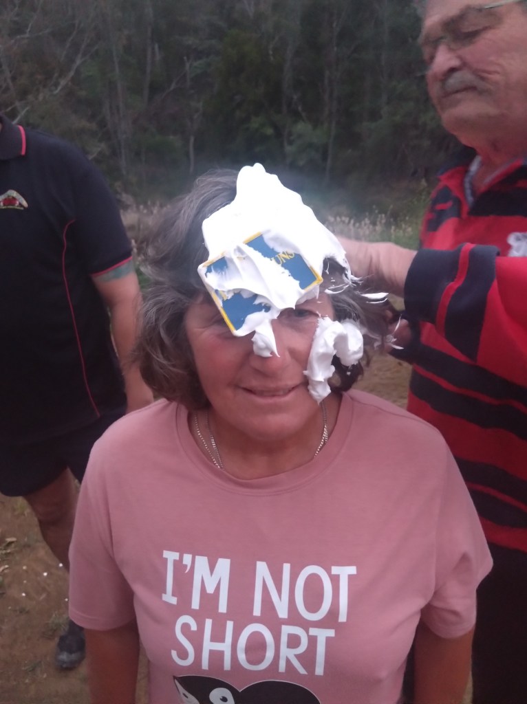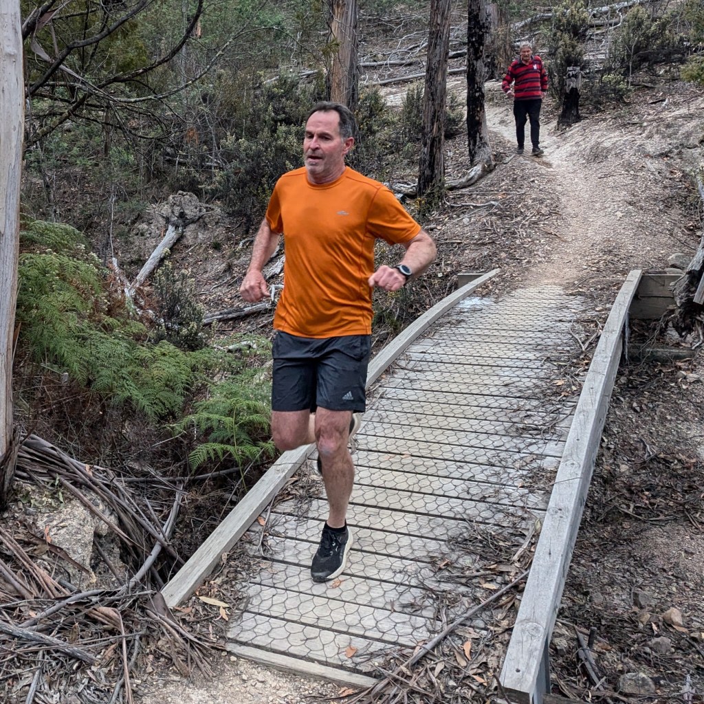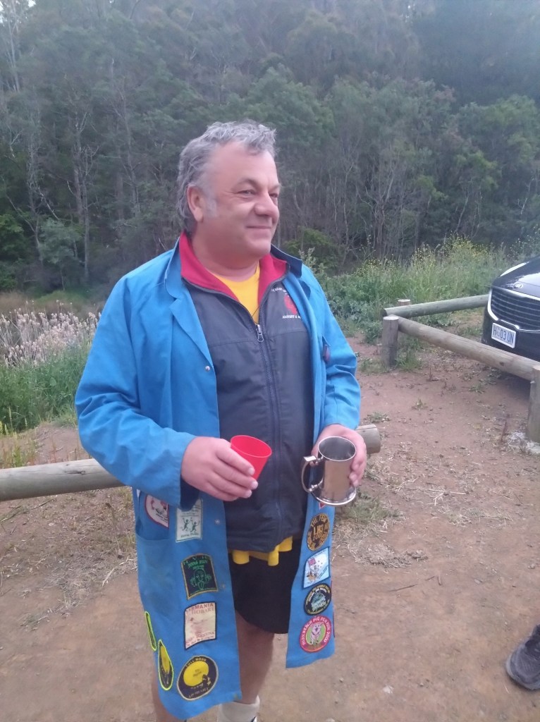 This was true: we found cute trail arrows sitting in excavated ant hills behind craftily erected barriers of sticks and stones. And the return trail passing a couple of metres away. Still, trail was easy to follow – not even Just Kidding and Big Bang could possibly get lost. There was bush. There were birds. It was flat. Fact! The walkers’ trail was just under 4kms. The runners must have done several clever loops as they passed the walkers from time to time.