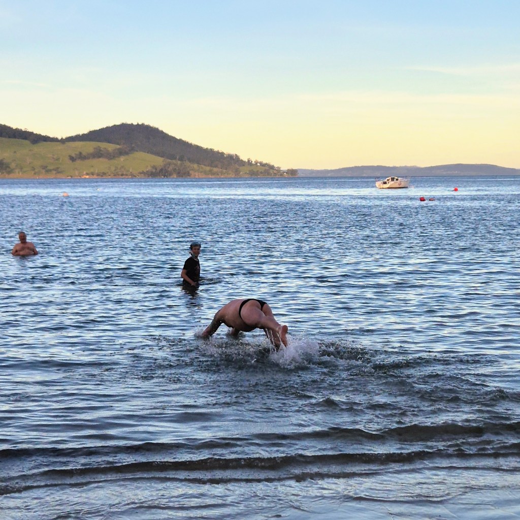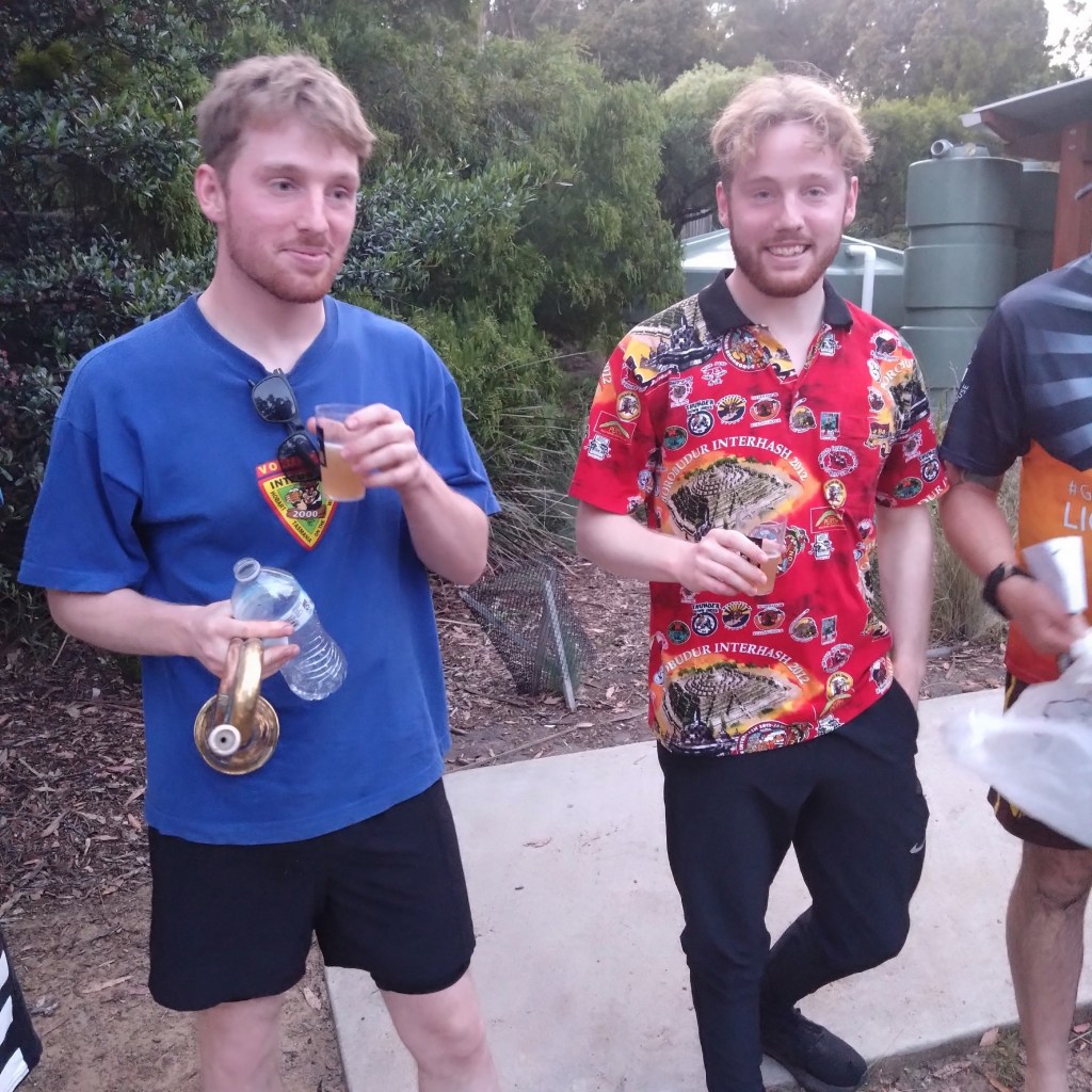 The bravest of Hashers – French Tickler, ITR, Pole Dancer, Limp, Prawn Star – terrorised the locals by cooling off with a swim. Bee’s Dick and Prawn Star conducted a stirring Lip session, with many references to the Bruny Island run (what happened to ‘what happens on Bruny stays on Bruny’?). The Inti induced weather inspired lingering until dark.