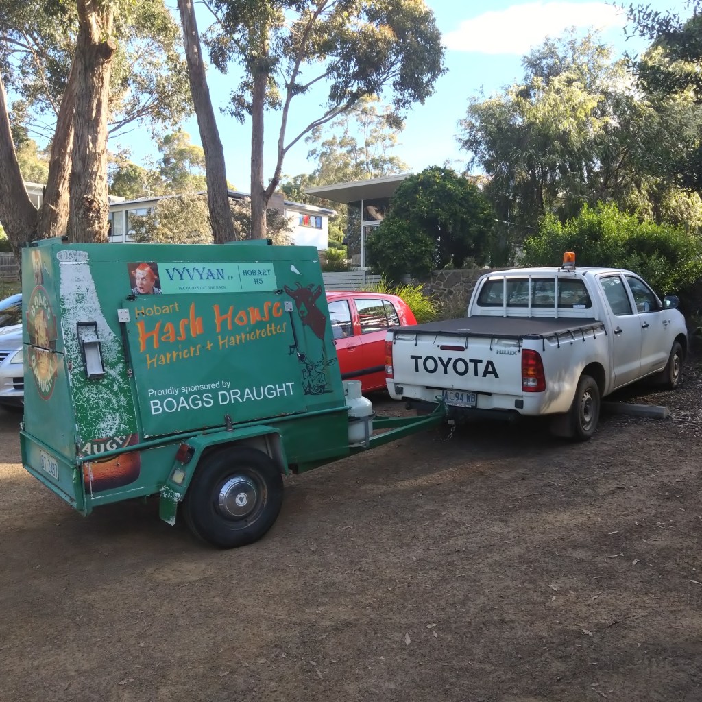 Bee’s Dick and Magic Touch arrived after the pack had left. The Burger Boys arrived even later (surprise!) at 6.45. Thrill Seeker arrived at 6.46, claiming to have spent all night looking for a lighthouse where he could deliver his purloined Bruny Island run baton; by the time he had put on his make-up and arranged his hair, he departed at 6.50. At least he left his car unlocked (and keys in the ignition) so that thirsty Hashers could get to the beer. No danger of someone stealing his car; the beer was worth more than the vehicle.