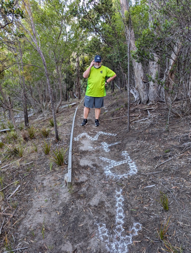About 36 Hashers set out on trail, following the coastal track to the left before looping back for a short stint along the road and then up into the bush of the Coningham Nature Recreation Area. Ah, bush trails in summer are such a delight!