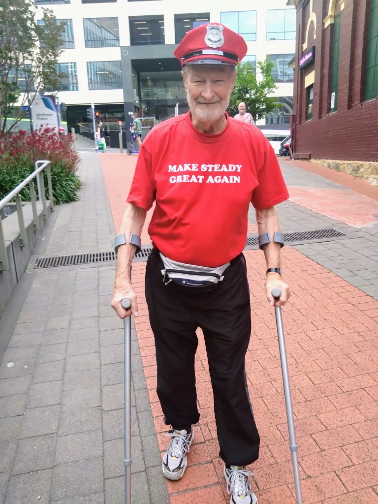 At the Workers Club, Hashers exchanged tickets issued by Cracker and Ratu Steady Eddie for drinks at the bar. Cracker didn’t trust all Hashers to see the huge arrow pointing into the Workers Club so went downstairs just in time to catch the front runners, including Eveready, Pole Dancer, Big Mac and Bee’s Dick, running straight past. Even when called back, they were reluctant to stop, thinking it was just a photo shoot. How stupid can stupid get? Ratu did an outstanding job as Chief of Security, using his crutches to keep under control any misbehaving Hashers. However, he almost got the sack when he handed out a ticket to a random real person.