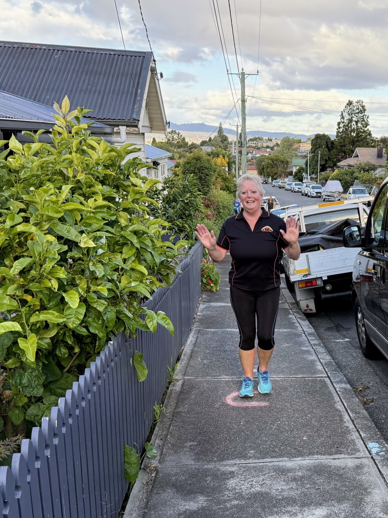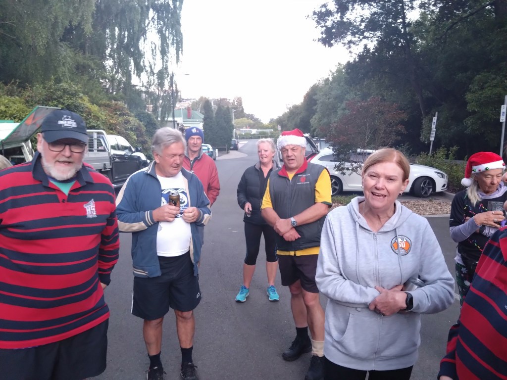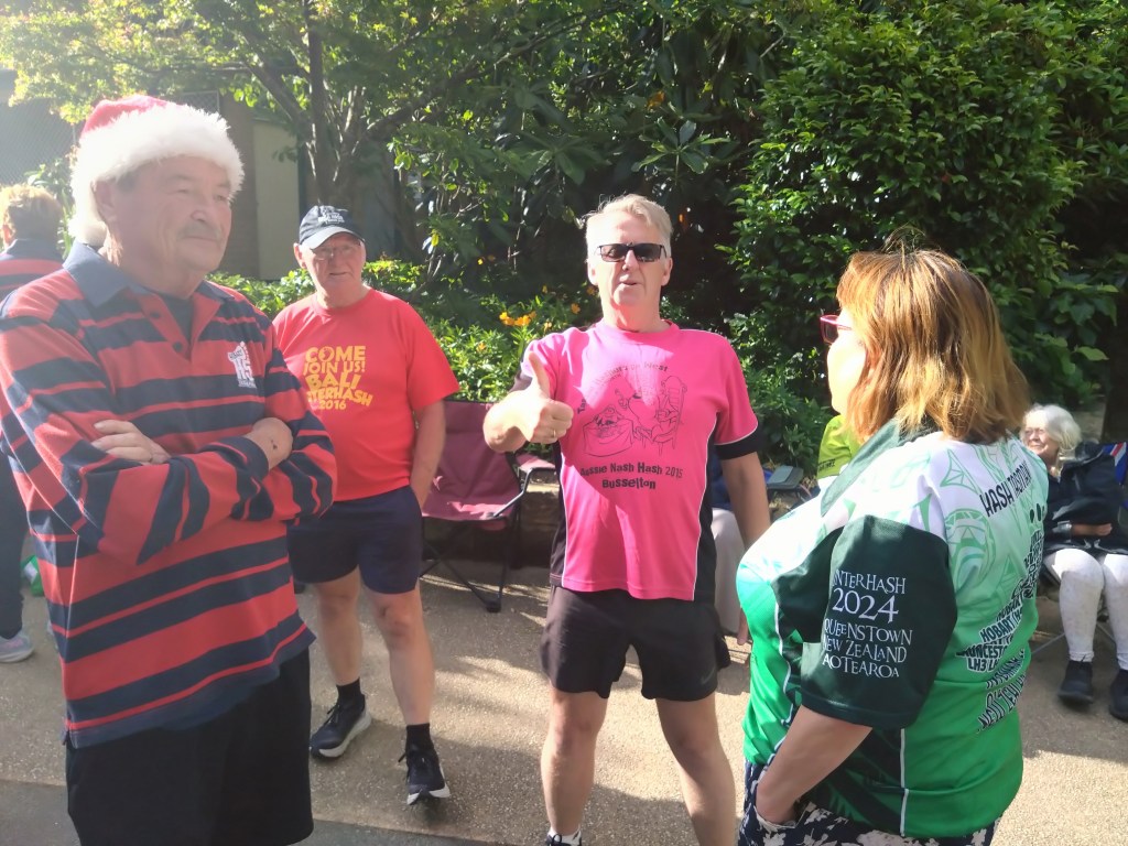 The walkers’ trail was mainly on streets, heading east past the historic female factory site and onto the Hobart Rivulet track before looping around some South Hobart streets and back to the Cascade Gardens via Cascade Rd. NFI where the runners’ trail went but, according to Brazilian, it was more scenic. This was confirmed by No Balls, a visitor from Adelaide Hash, who enthused about the scenery, old houses, shiggy and switchbacks, claiming that one would pay money to see such a trail in Adelaide. She finished trail with a big grin, asking ‘Where’s the next run?’ Clearfell bravely took full responsibility for the walk while Brazilian accepted accolades for the run.
