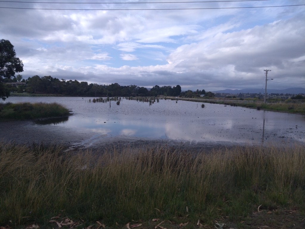 The track notes for Gould’s Lagoon (right next to Hestercombe Reserve) tell me that it was designated as a wildlife sanctuary in 1938, and encourage me to take a gentle stroll on the track around this thriving sanctuary where over one hundred species of birds have been observed. Did trail go around the lagoon? No! When I asked Hare Sonar why, he replied that the lagoon was too deep to walk across and, in any case, he saw only two birds. Fair enough!