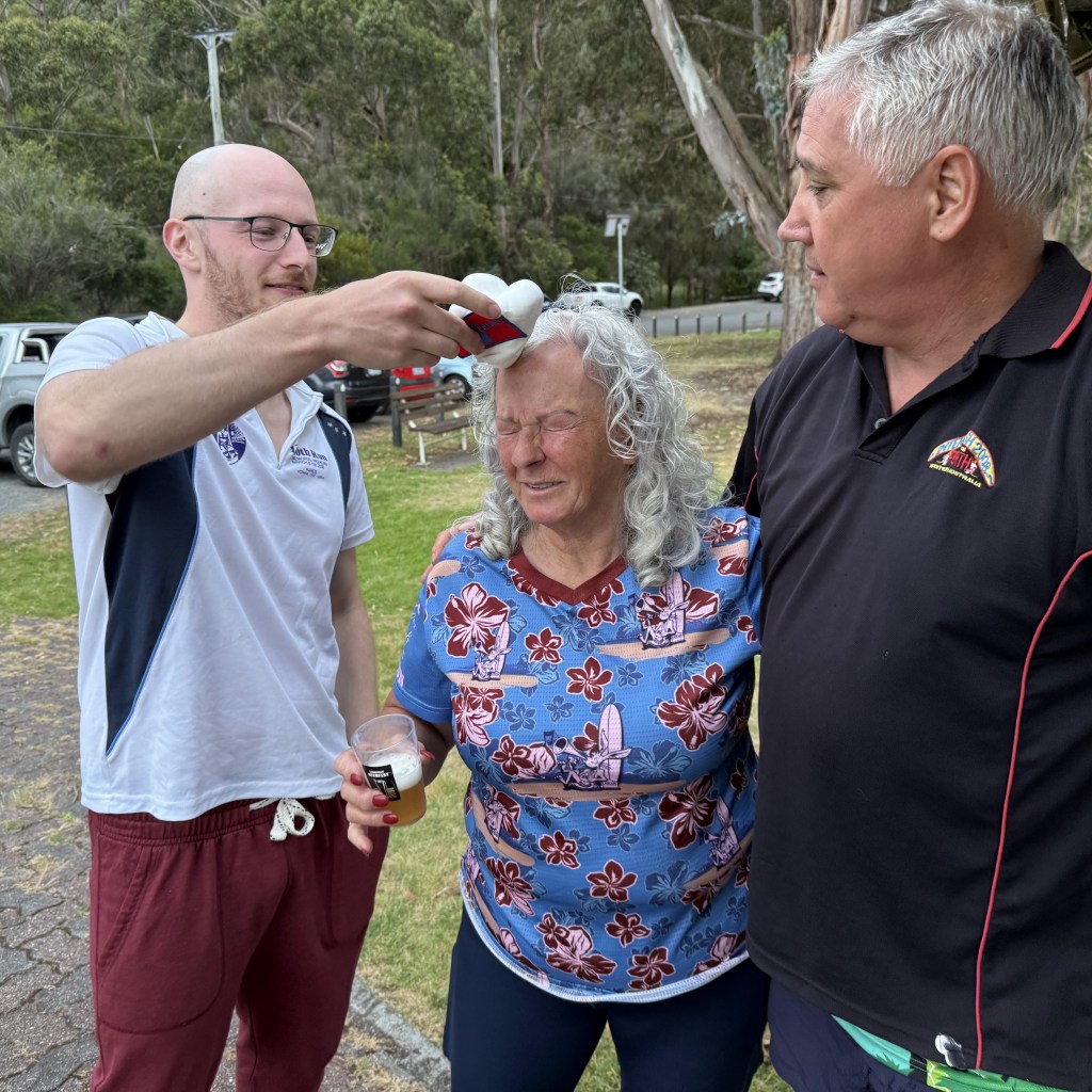 Snack Bar arrived, the Hash BBQ bouncing around in the back of his ute, and he even remembered the gas bottle! The front seat was awash in tomato sauce and sriracha, and the utensils were banging around in the tin like a pencil dick in a 70-year old hooker. All looked good until it came time to set the barbie up, only to find that it was much like In The Raw at an Oktoberfest. Legless.