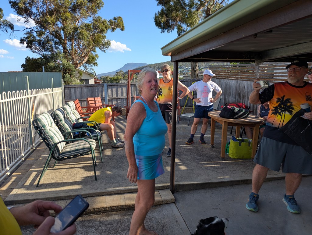 The Lip session was frequently interrupted by the ‘thwack’ of Hashers hitting their heads on the low beam of Rigor’s carport. Slow learners! Her Highness Eager and Cracker had no such problems, yet another example of the world belonging to small people, even if they are Hashers.