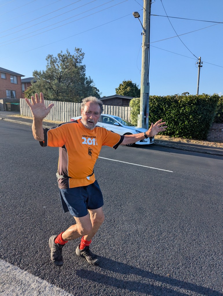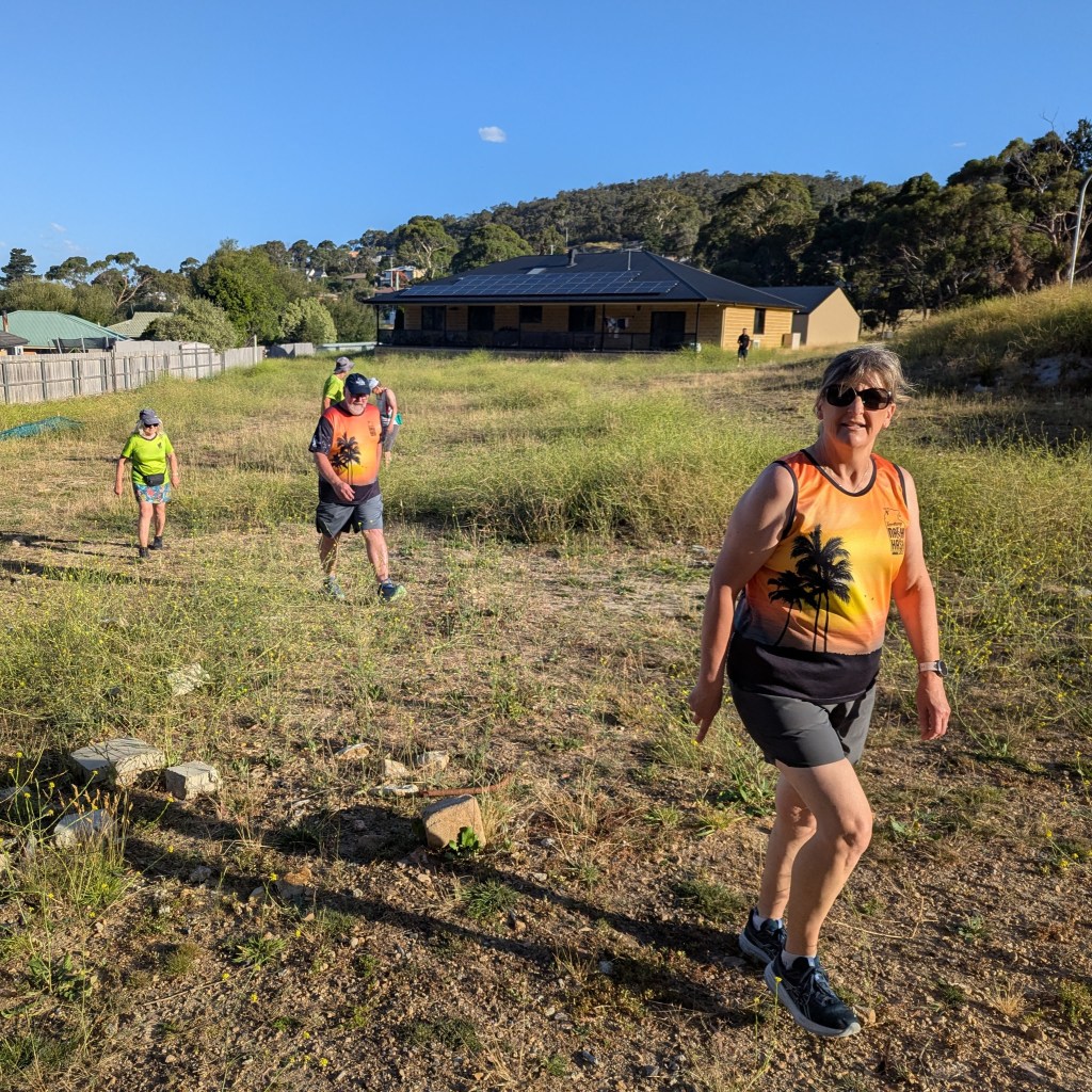 Total distance for the walkers’ trail was 4.22kms, total ascent 122m. I attempted to get some information about the NDIS trail, but reliable Facts were in short supply. Mother of Pearl reported that she had only walked straight from the Casa de Colston, so she was no help. Mr Bean claimed that he had walked to the top of every hill that ever there was, so concluded that he couldn’t possibly have been on the NDIS trail. As for the runners’ trail, the only indication I have is from Hump Day Hash’s Blueprint (it was obviously another quiet night in Lonnie Town) who, running past with the comment that he had been told he had to hate ITR as the most Hated Man in Hash, admitted that he actually hated Rigor Mortis more.