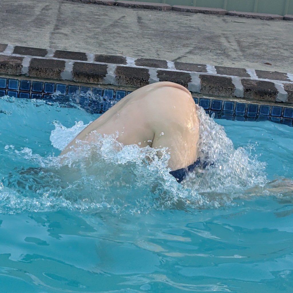 Back at the On On, a number of Hashers cooled off in Rigor Mortis’ pool. Star of the show was Prawn Star, who won the Creative Bare Butt Duck Dive Competition (Fact: he was the only competitor in this prestigious competition). Just a hint, Prawn Star: the object of a duck dive is to end up vertical in the water, not horizontal.