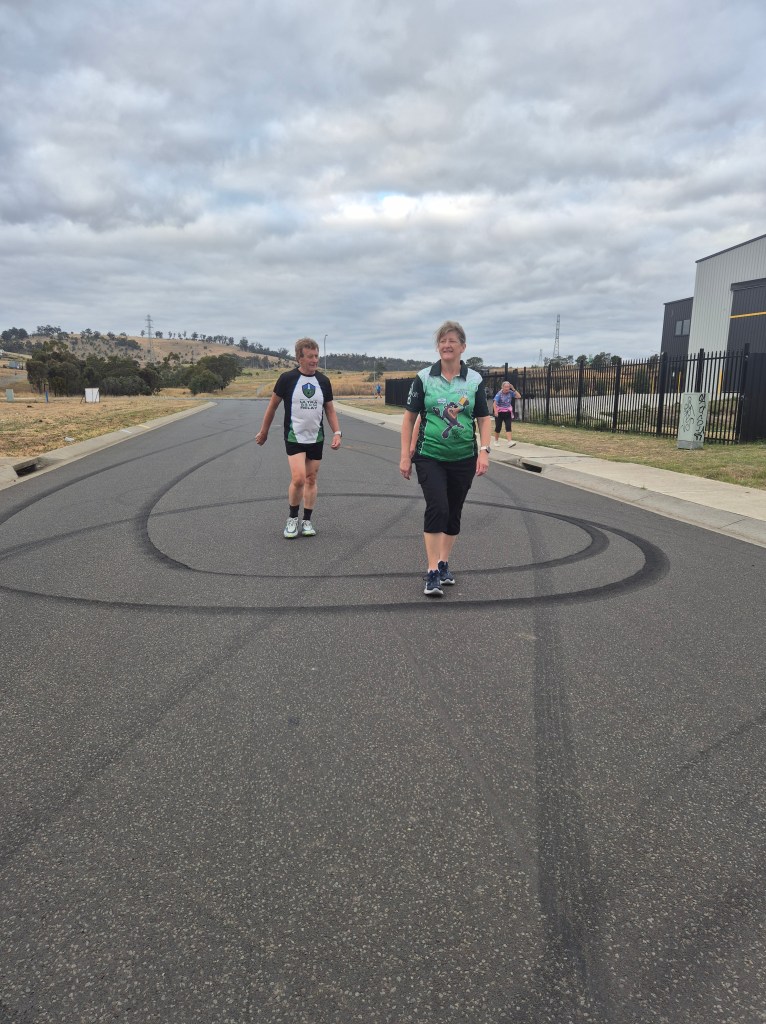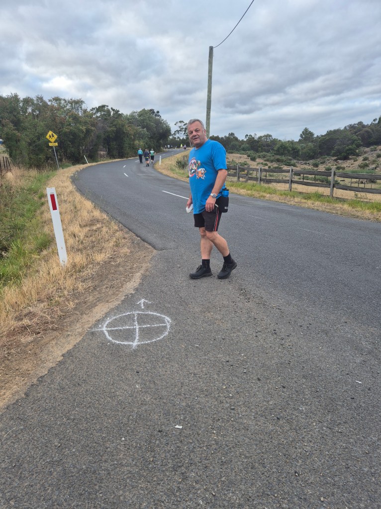 We passed a school for little learners, which excited Her Highness Eager and Cracker, who were both eager to learn how to do burnouts. We then continued through the industrial wastelands, with black burnout marks striping the roadway and strips of shredded tyres littering the ground in homage to the Gods of the Wastelands. Yes, you’ve gotta love the ambience of Bridgewater. This was all virgin territory, a fact that the Hare mentioned a few times. Of course, it was possibly virgin territory for very good reasons, but the Hare didn’t mention this.