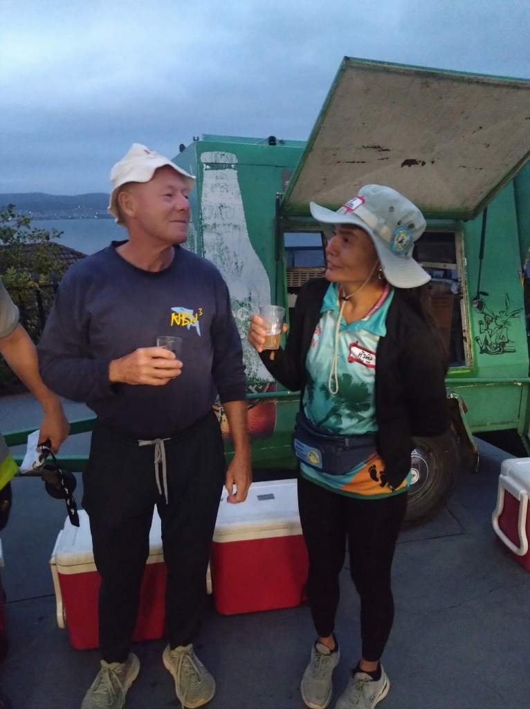 A Piss Stop was, in fact, near, at the Battery Lookout near the bottom of Churchill Ave, and we enjoyed tasty cocktails instead of beer. The beer was 1.3kms away, a 106m climb up the hill. So, after lingering over cocktails until the biting wind drove us away, we did a little loop and then followed our downward steps back up the hill. WTF?