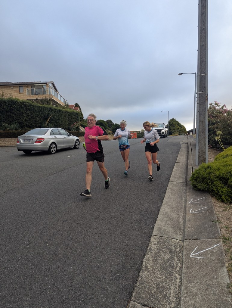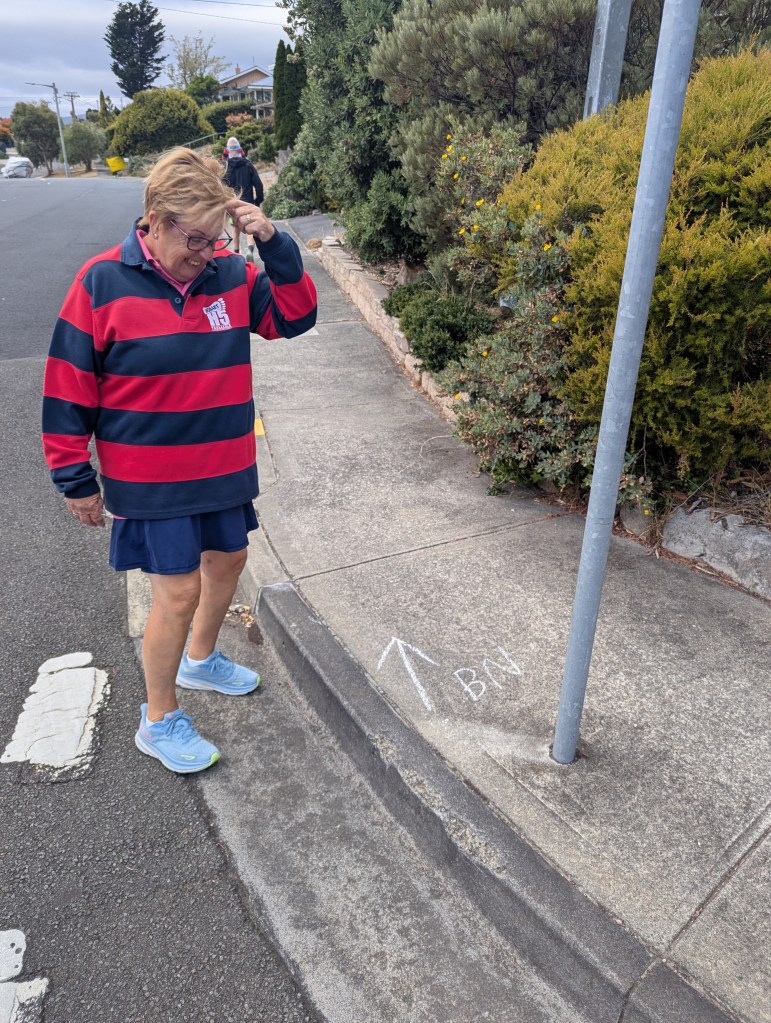Mr Bean’s chalk talk included the claim that it was the inaugural Skyfall run, with only one hill, which we were already on, walkers could expect 2.6kms, runners 3.6kms, and he had included a tiny bit of off-road for the runners (who were, however, unable to find it).
