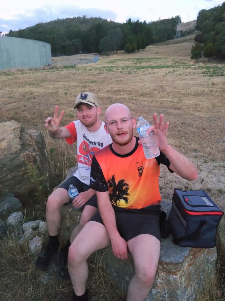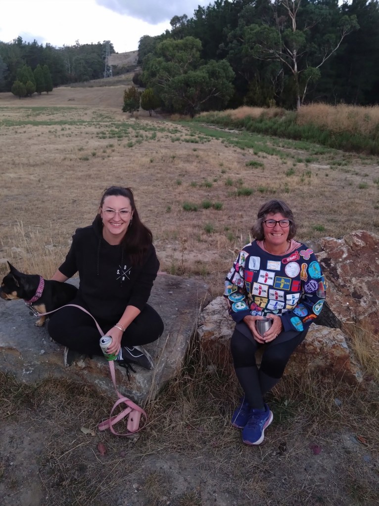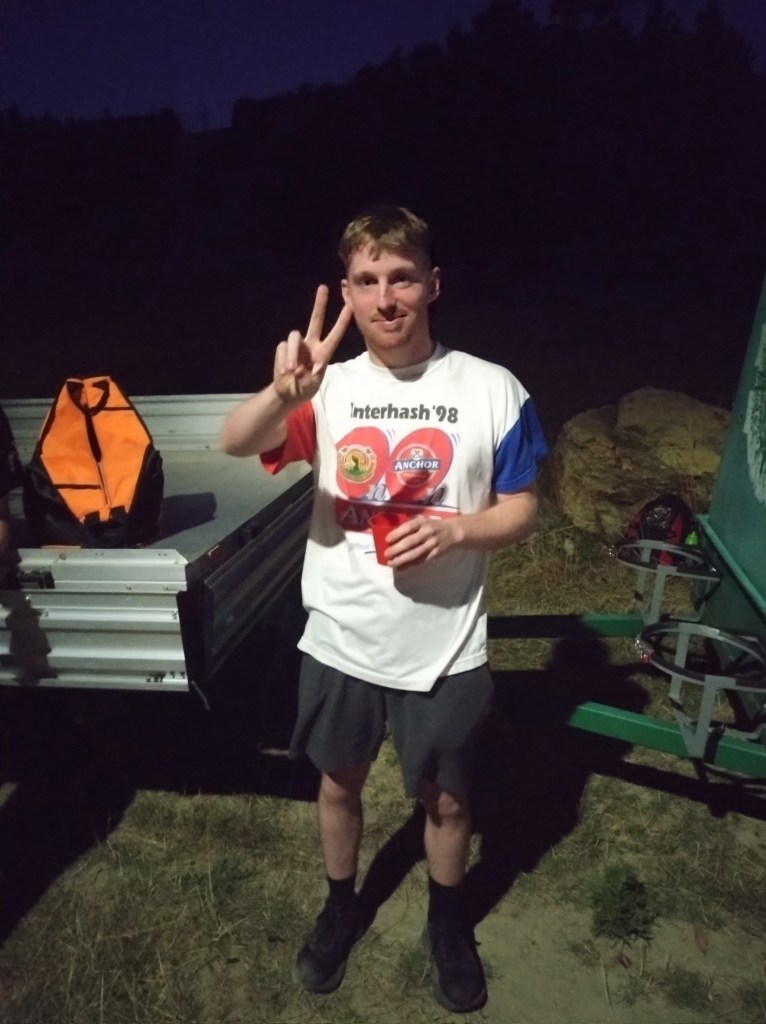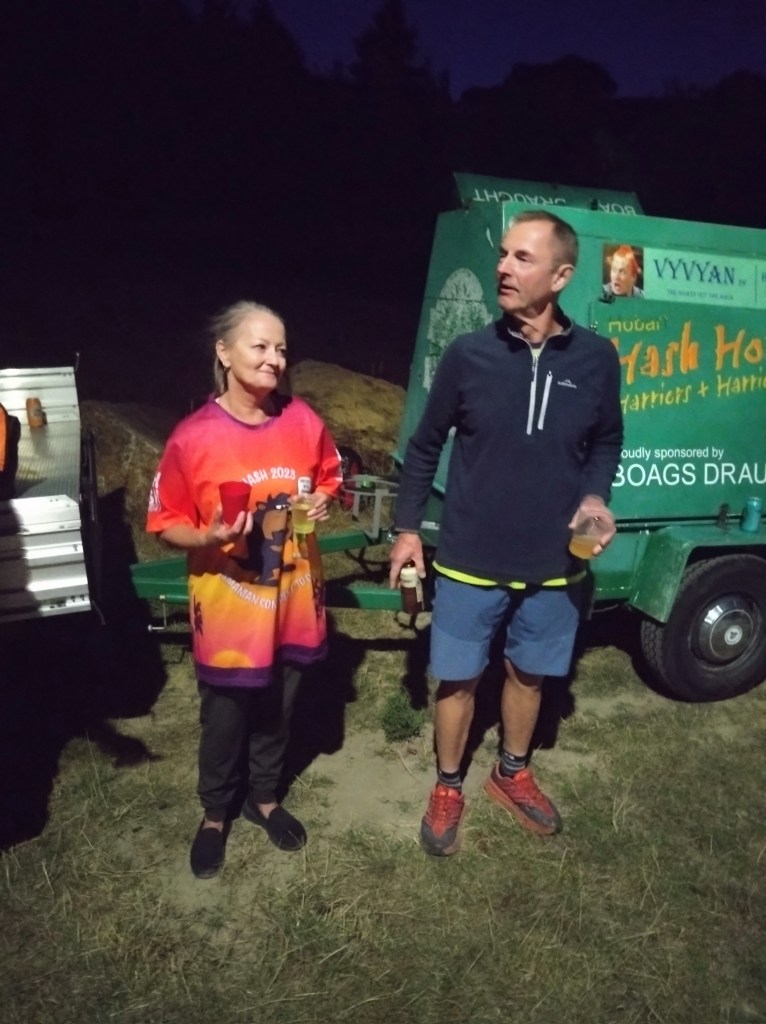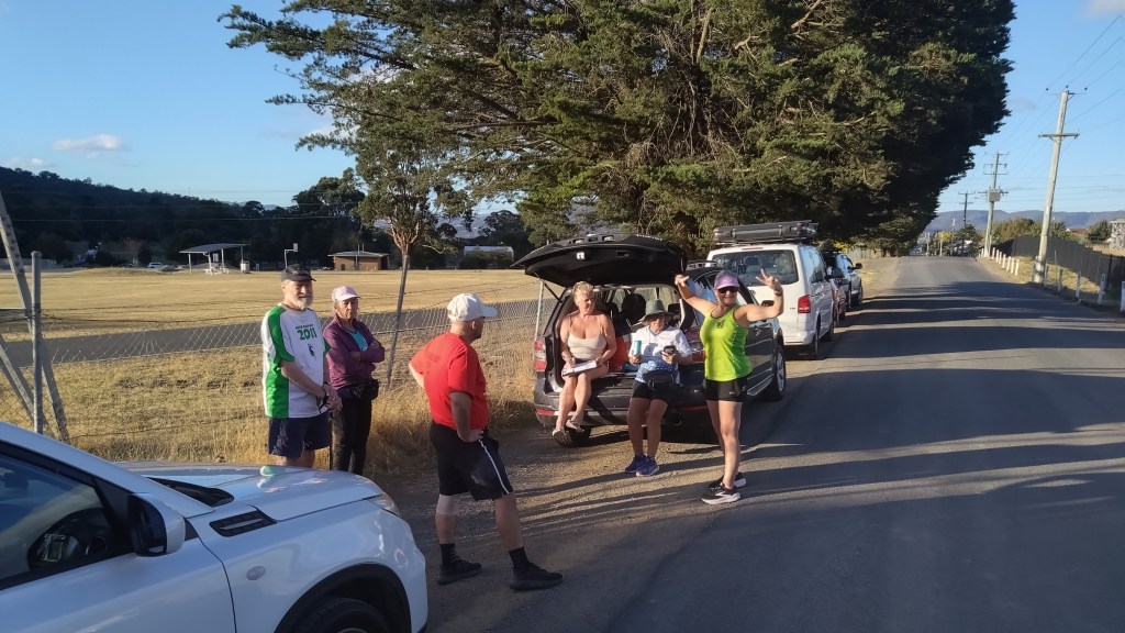 Tasmania saw several Hashers exit our little island on ferries, planes, any way possible to get to Nash Hash over in WA. So, the consensus was, there’s not going to be many Hashers on trail for a coupla weeks. How wrong are they! Offal and Bog Roll turned up and Sir Eve returned from his bikies mainland trip. Twenty-one Hashers turned up! Highness Eager and her “little”, (that’s Eager’s description) trail setting mate, Dishlicker have a white dusting about them. Incoming, sitting on a rock, yawning and almost asleep waiting for the 1830 hr start. But he has a bit of a wait as Thrill Seeker arrived at 1824 hrs putting everyone’s clock out of sync.