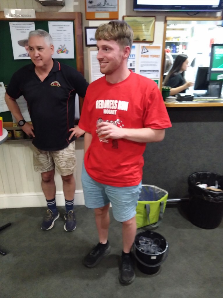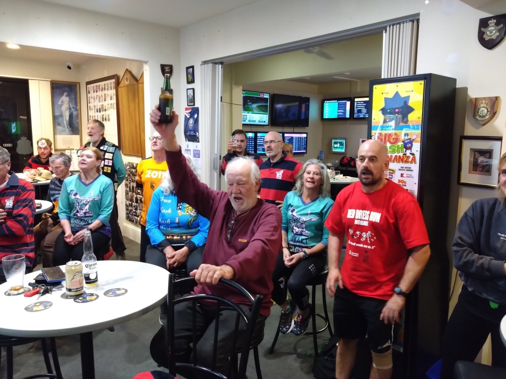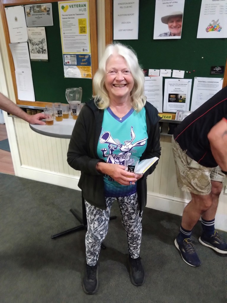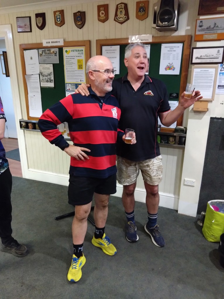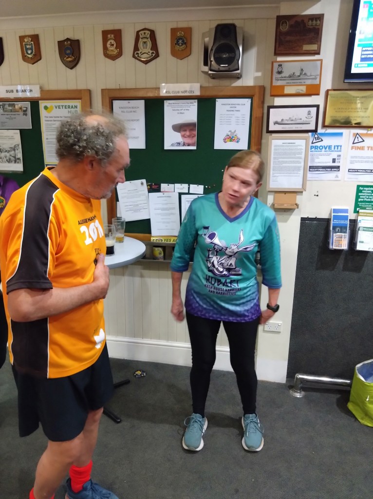 The hares’ cries of ‘Best Trail of the Year’ followed us as we left the relative warmth of the Kingston RSL for trail along the oft-trodden Beach Rd. There followed a loop around the outskirts of the Kingston wetlands, into the Kingborough Community Hub, around Kingston central and back to Beach Rd where we re-traced our steps to the On On. Total distance for walkers was just under 5kms, with miniscule elevation gain: an obvious attempt by the scoundrels to ingratiate themselves with Hash royalty such as Gov’nor Honkers (who confounded their plans with his royal absence).