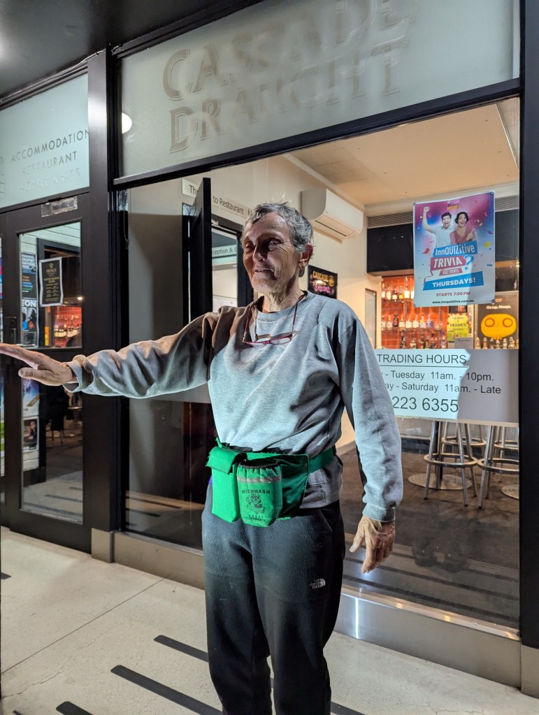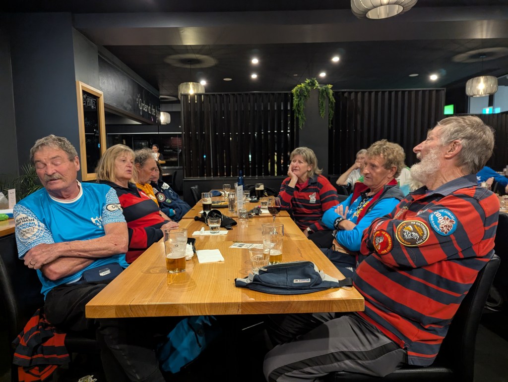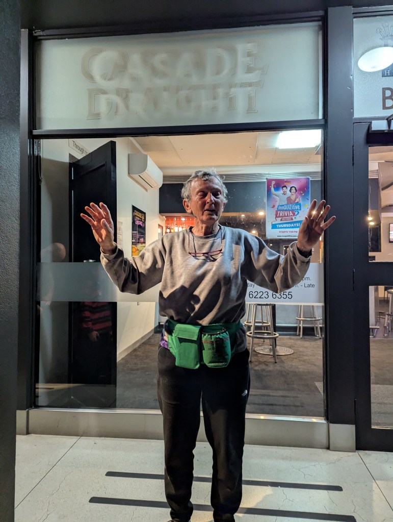 The walkers’ trail traversed only a small area of Battery Point and Sandy Bay but managed to cover almost 5kms with a series of clever, tight twists and turns (not to mention officially approved road crossings). Total ascent was exactly 111m; it would have been less if the hare had resisted what was apparently an irresistible urge to take us up the dread Billy Goat Lane. A late loop around St Georges Church was avoided by some, such as ITR, who feared that lightning might strike the church spire if they ventured too near.
