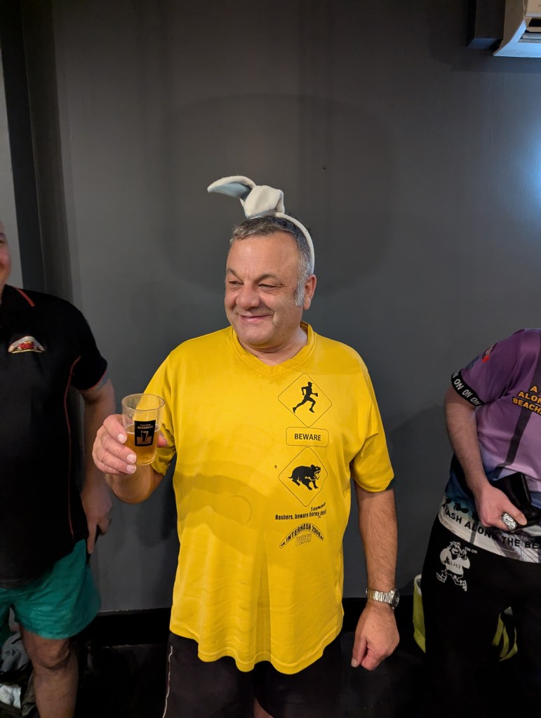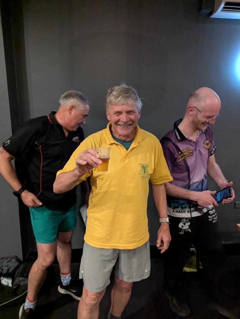 The Prince of Wales was a great venue as always, and staff generally didn’t bat any eyes over Hash names. Although Bee’s Dick had been heard, on ordering his meal, to say with a touch of embarrassment, ’Just call me Bee’. That’s a weird pick-up line. Such bashfulness didn’t carry over to the Lip session, where Bee and Prawn Star indiscriminately heaped non-PC manure on as many Hashers as possible. You’ve gotta love Hash: the last bastion against political correctness!