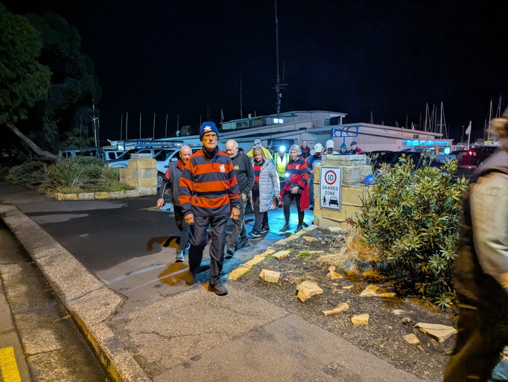 As 6.30 neared we were given a speech from H4 regarding the night and it significance and a rough description of the trail. We were away out the door and to the left towards the Casino. Crossing Sandy Bay Rd, through the Queenborough Ovals and into Lambert Gully Reserve to Churchhill Avenue.