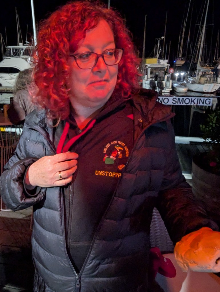 A lot of memorable Hashers were here including Silent P from Harem, Unstoppable from Adelaide Hash, CoUNT ZERO and Comfortably Dumb returned (not being put off by her Naming).