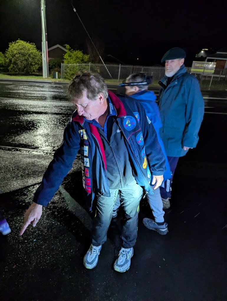 Cant Stop pointed at the trail markings and told us to go “That way”. 200 metres up the road and Triple K was on the phone to the Hare – Where the “F” does it go. Oh the Joys of Hashing in the Wet! Eventually we found it again, only to lose it again and again.