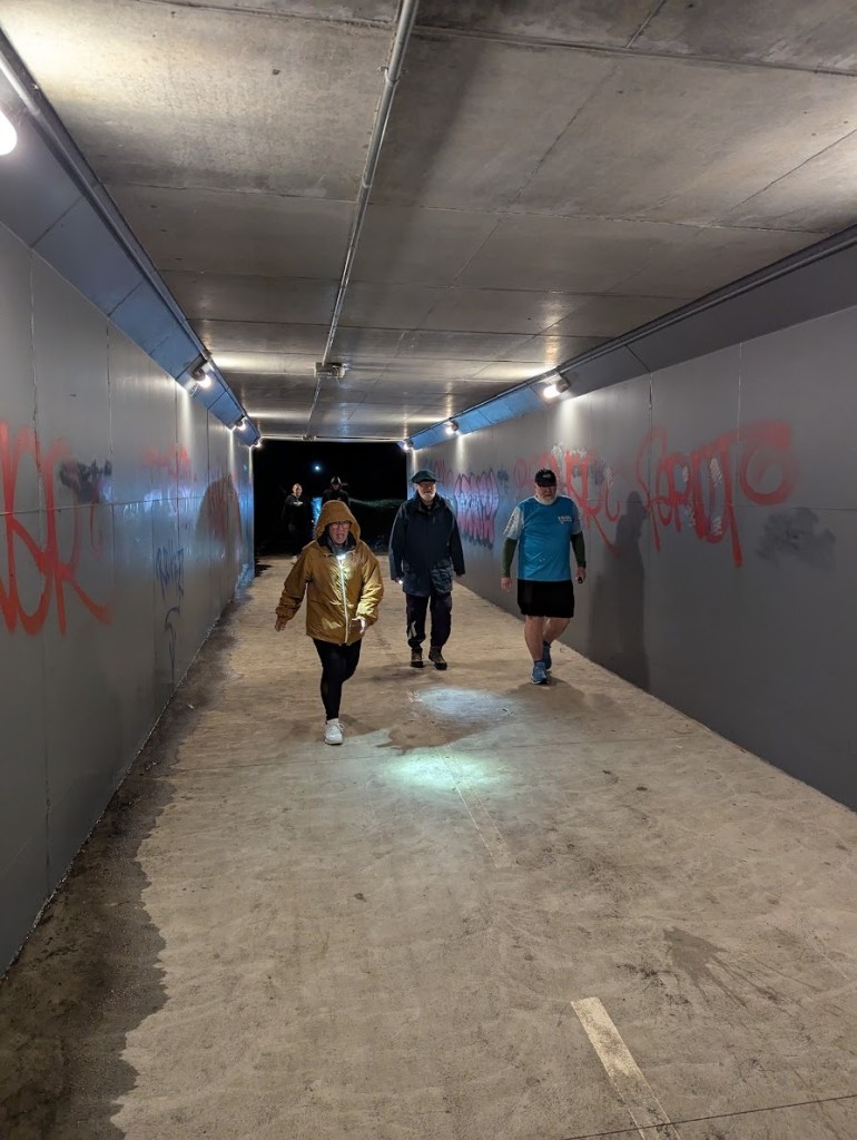 Most found trail markings through the underpass near the Park and pathway that is used on the Park Runs.